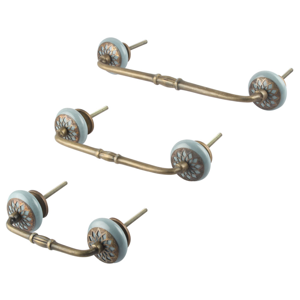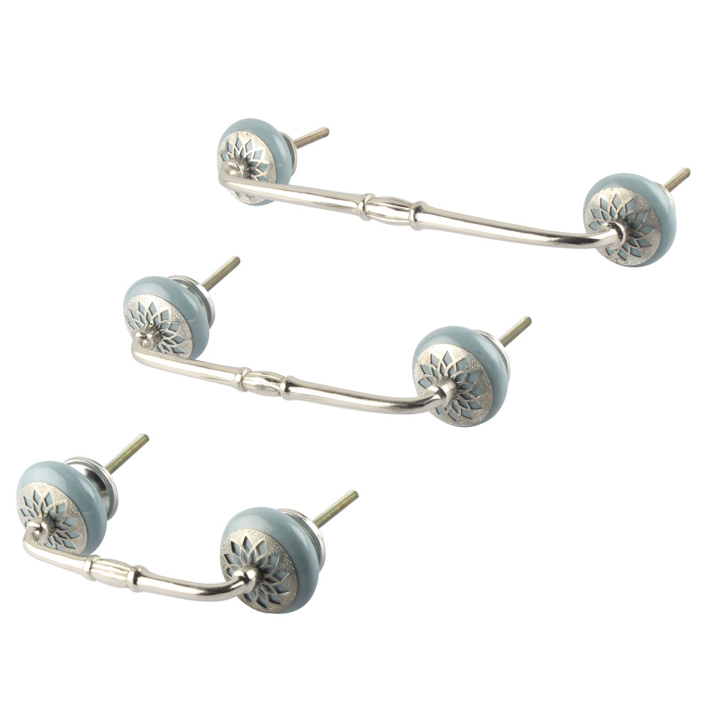 Grey Strewn Flat Ceramic Bridge Handle. Ideal for Drawer, Dresser, Cabinet, Wardrobe, Cupboard and Almirah.