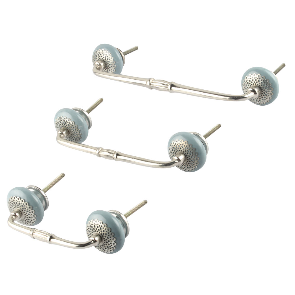 Grey Strewn Flat Ceramic Bridge Handle. Ideal for Drawer, Dresser, Cabinet, Wardrobe, Cupboard and Almirah.