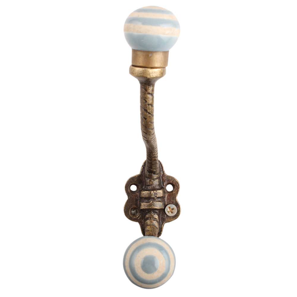 Grey Striped Etched Ceramic Floral Iron Hook-Ehg-89. When Put on Wall or Cabinet It Gives A Sturdy Look. This Hook is Strong Enough to Hold Your Cloths, Keys, Tea Cups, Coffee Mugs, Hand Towels Etc. Etc.