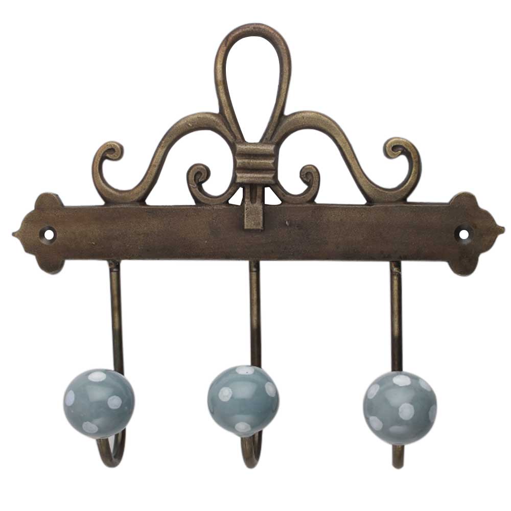 Grey White Dot Ceramic Iron Hook. A Perfect Complement to the Soft Tone of the Wood are these White Traditional Hat &Amp; Coat Hook Made of Genuine Porcelain and Brass. It can be use to Hang Jewellery, Leashes, Towels, Scarves, Light Weight Sweaters, Caps Etc.