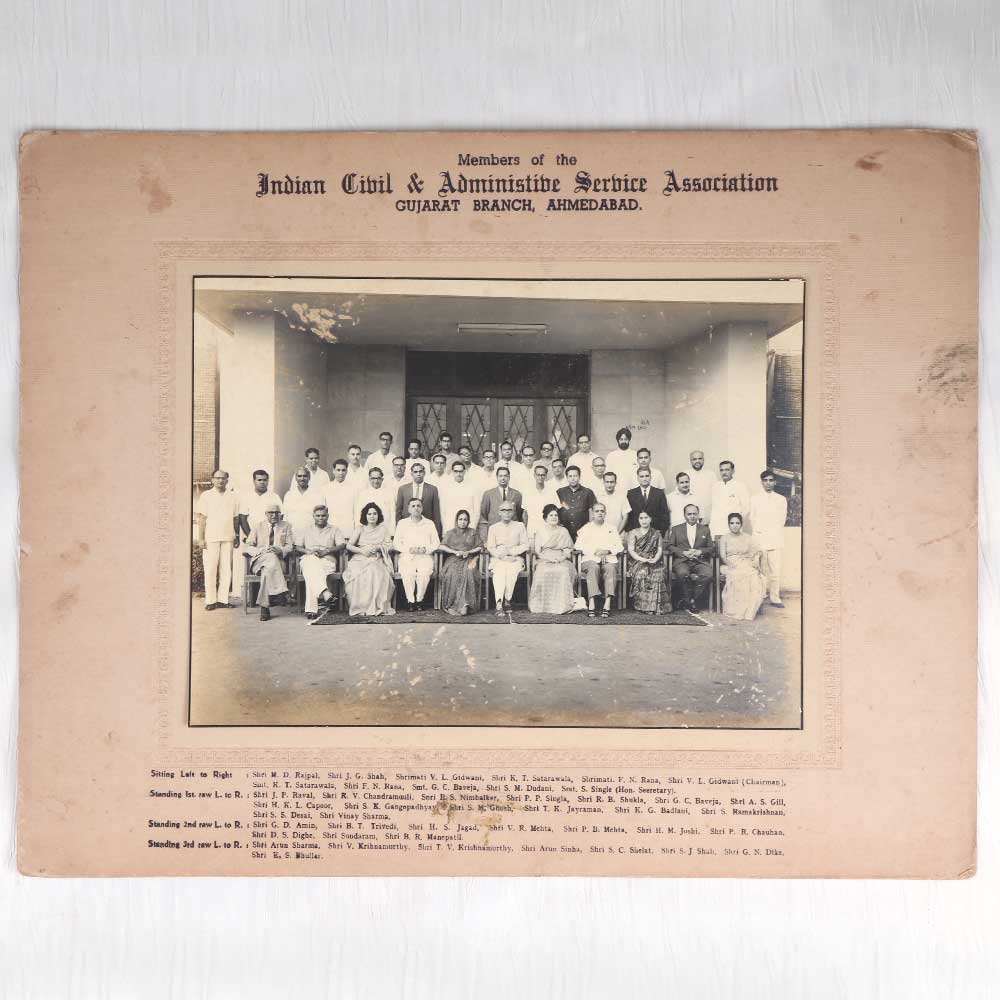 Step back in time with this one-of-a-kind vintage group photograph. Capturing the members of the Indian Civil & Administrative Service Association, Gujarat Branch, Ahmedabad, this striking black and white image evokes a bygone era. This rare artifact offers an intimate window into the past. The formal pose and attire reflect the status and discipline of these gentlemen who helped govern British India. An important photographic record, this image vividly captures a moment in time. For antique collectors and history enthusiasts alike, this vintage photograph is a must-have. Proudly display it in your home or office as décor that highlights India's rich history. A thoughtful gift for those who appreciate Indian culture and heritage.