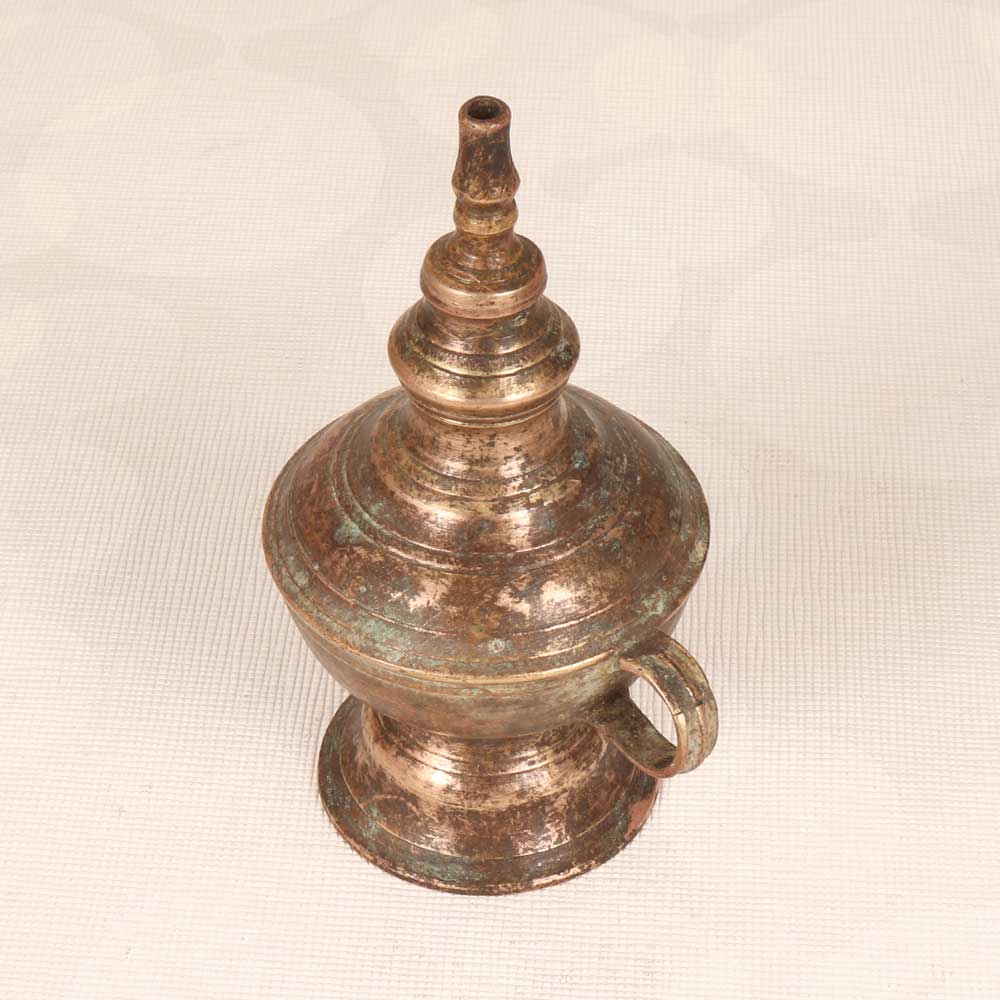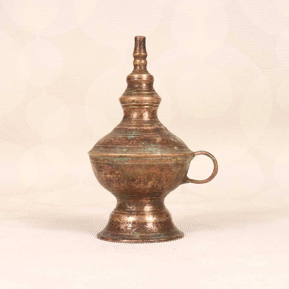 Step back in time with this antique-style brass oil lamp handcrafted by artisans in Gujarat, India using time-honored techniques. Featuring delicate engraved patterns, this lamp adds a vintage touch to any space. In the evenings, light the wick and let the gentle flicker create a calming, nostalgic scene. The warm light from the mustard oil fills your home with the welcoming glow of an earlier era. Place it on the mantel, bookshelf or table to infuse your decor with old-world character and charm. A thoughtful heritage gift idea for a special occasion. This hand-crafted lamp brings the craftsmanship of the past to life and makes a treasured decorative accent for years to come.