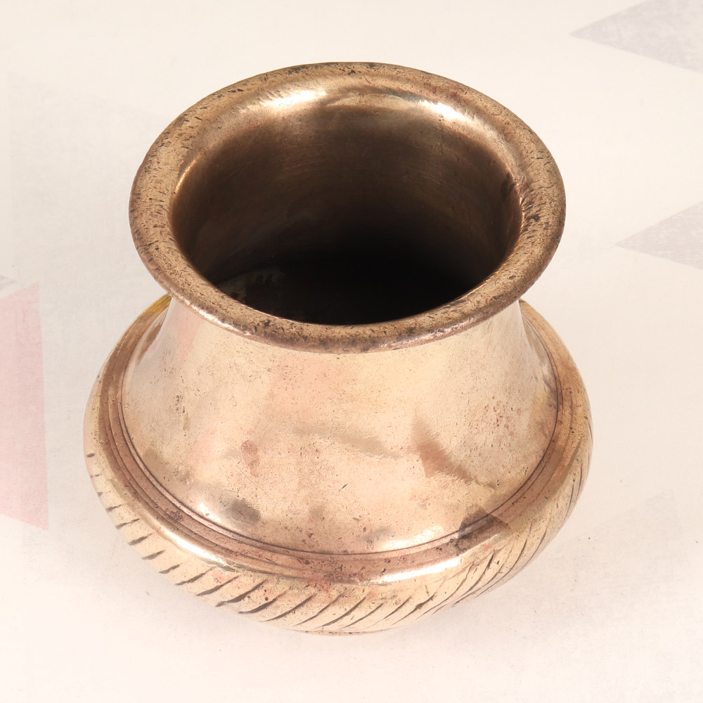Steeped in the rich spiritual traditions of India, this vintage brass Lota beckons you to explore the depths of your inner landscape. Crafted with time-honored techniques in the artisanal region of Gujarat, this holy water pot radiates an ancient energy that will elevate your prayer and meditation practice. Invite the sacred into your home with this beautifully functional Lota. Use it to purify and bless your space with holy water, allowing its warm brass glow to create an atmosphere of reverence and introspection. Whether you're a seasoned yogi or newcomer to the path of self-discovery, this Lota will become an indispensable tool in your ritual toolkit. Designed to last for generations, this Lota is an investment in your wellbeing and a meaningful connection to the ancient wisdom of the East. Embrace the grounding power of this time-honored vessel, and let it guide you towards deeper self-awareness, clarity, and communion with the divine.