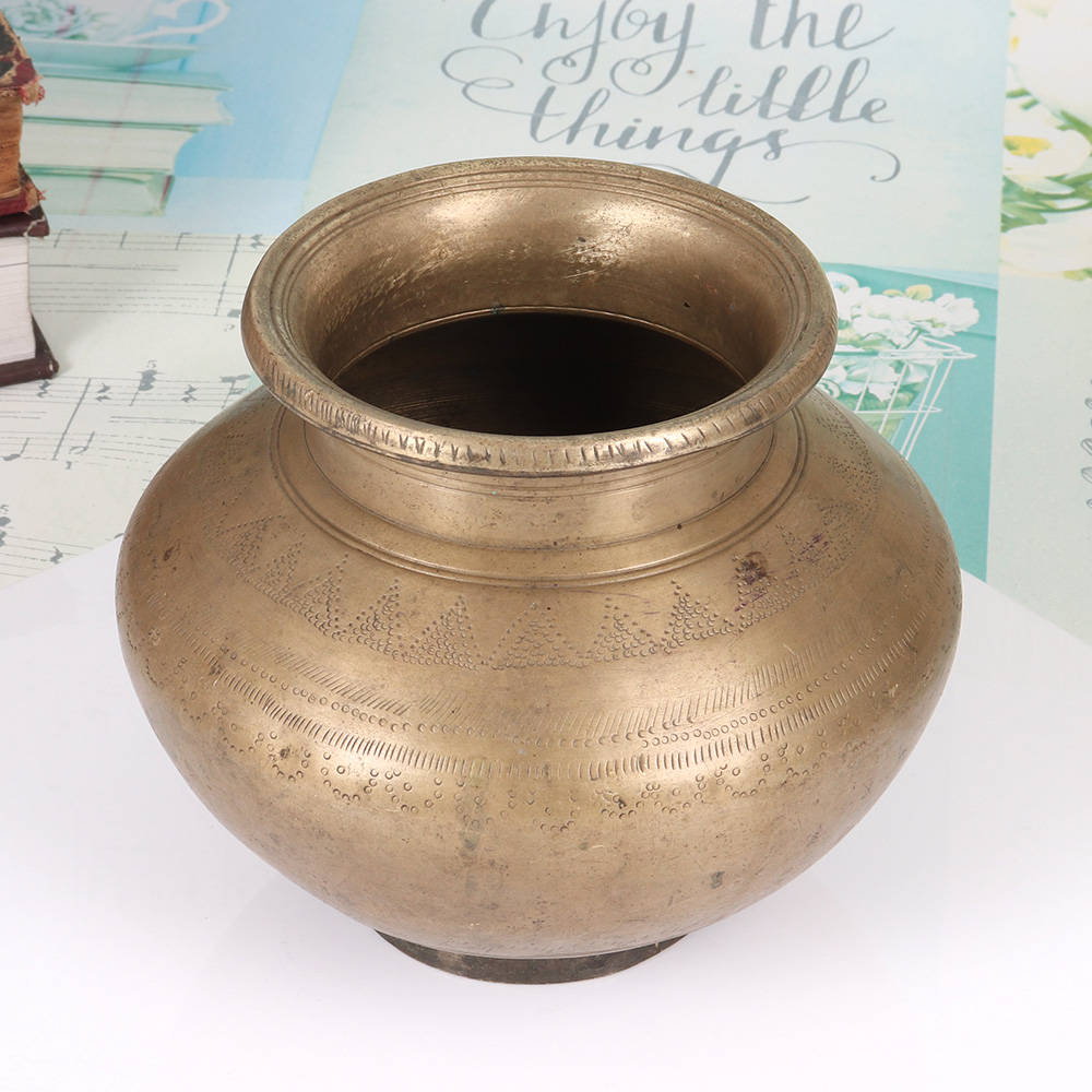 Immerse yourself in the timeless wisdom of ancient spiritual practices with this captivating brass holy water pot from the heart of Gujarat, India. Meticulously crafted with intricate carvings, this vessel invites you to deepen your connection to the divine and infuse your everyday life with sacred energy. This exquisite brass pot is more than just a functional accessory - it's a portal to a world of spiritual enrichment and cultural heritage. Imagine the feeling of pouring blessed water over your hands, cleansing your aura and centering your mind. Whether you're an experienced practitioner or simply seeking to cultivate a deeper sense of mindfulness, this vessel will become an indispensable part of your sacred journey. Crafted by skilled artisans in Gujarat, India, this holy water pot is a testament to the region's rich spiritual traditions. Incorporate it into your daily puja, use it to bless your family and guests, or display it proudly as a stunning decorative piece. With its timeless elegance and profound significance, this brass pot will elevate your rituals and transform your living space into a serene sanctuary.