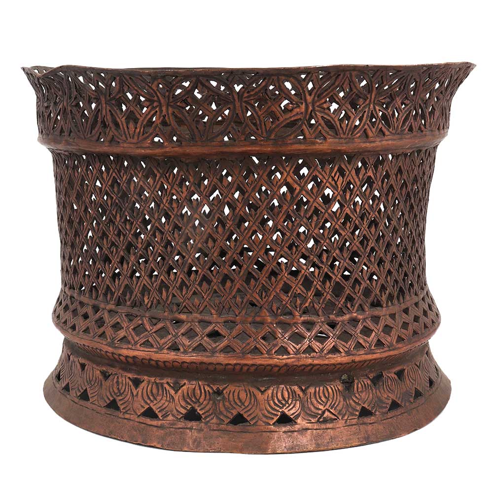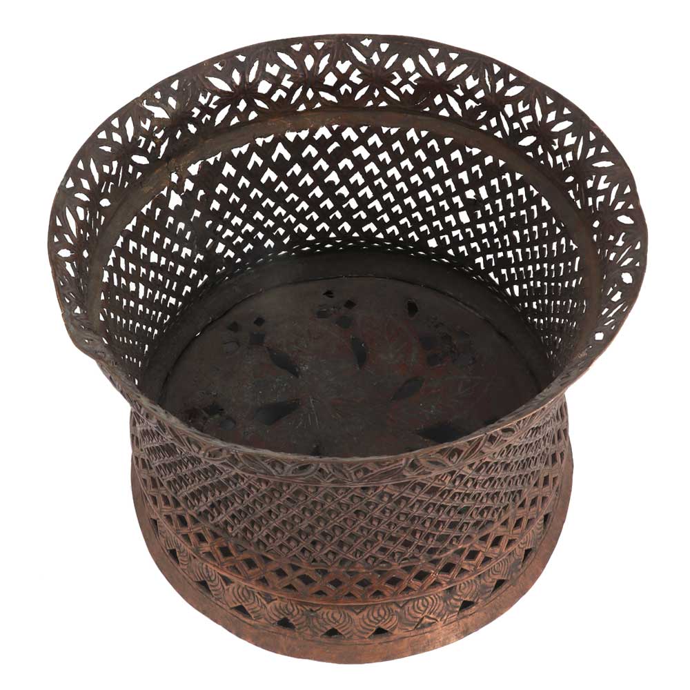 Hand Carved Copper Jali Work Tea light Holder For Religious Purpose. It can also be used for flower decoration, planter pot, lampshade, side table decoration, Diwali gift, Christmas gift, new year gift, house warming gift.