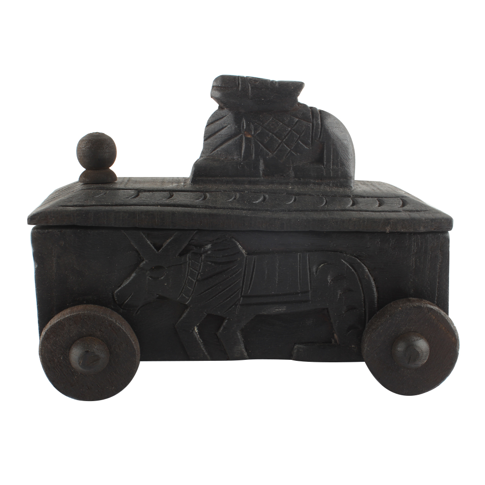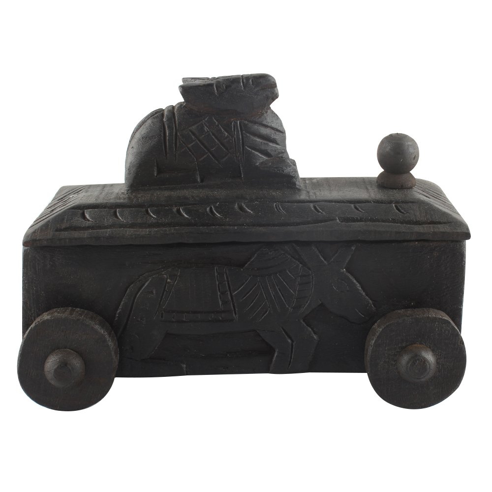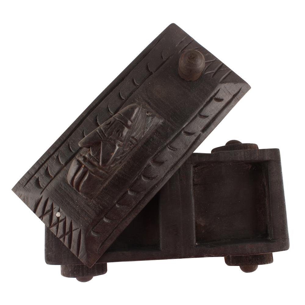 Hand Carved Nandi Wooden Box For Spices . Ceramic Drawers in Wooden Frame. The Spice Boxes are designed with different patterns. These boxes are made using natural wood which does not harm the purity of spices.