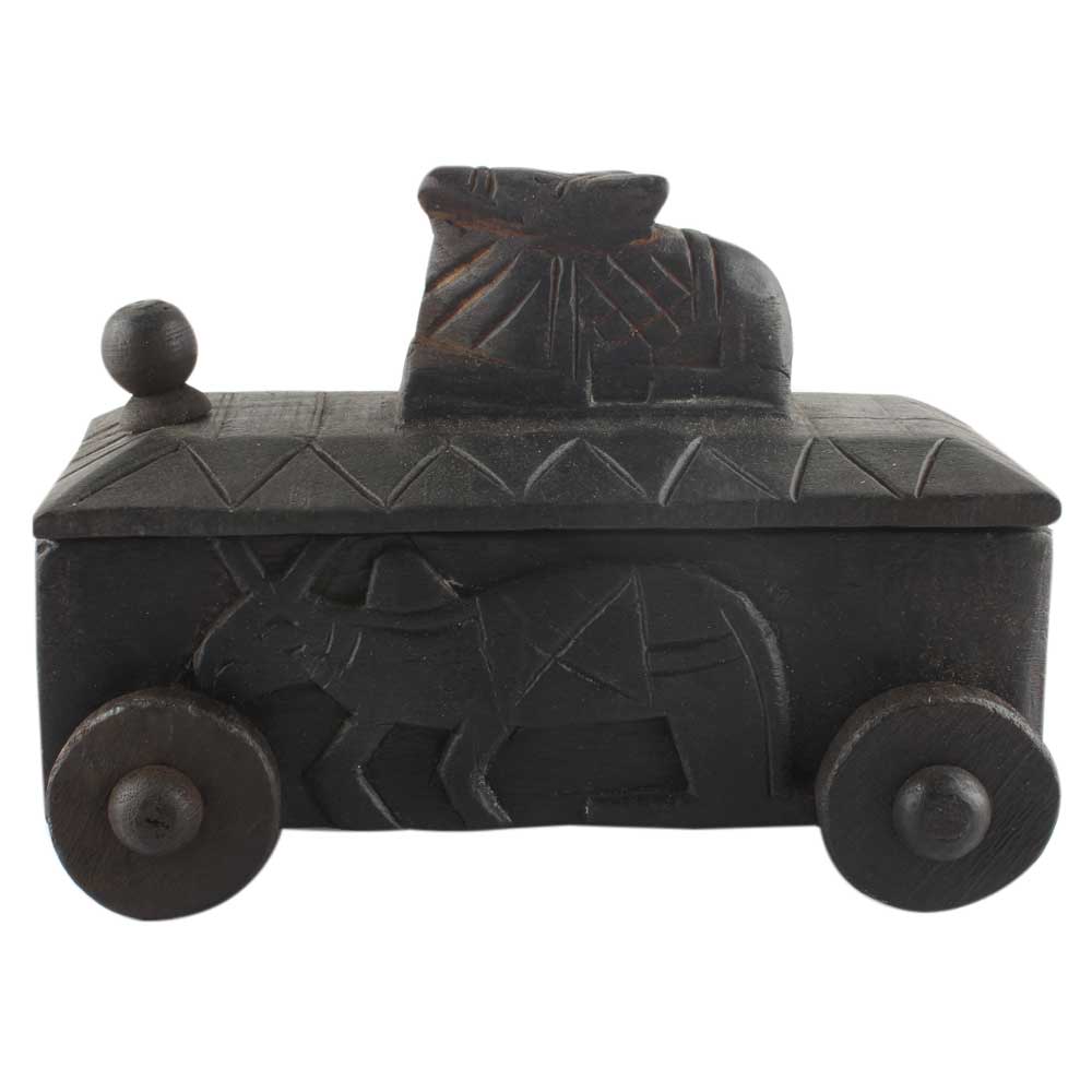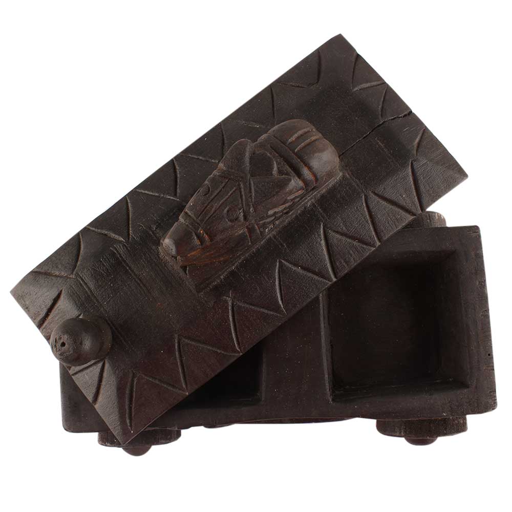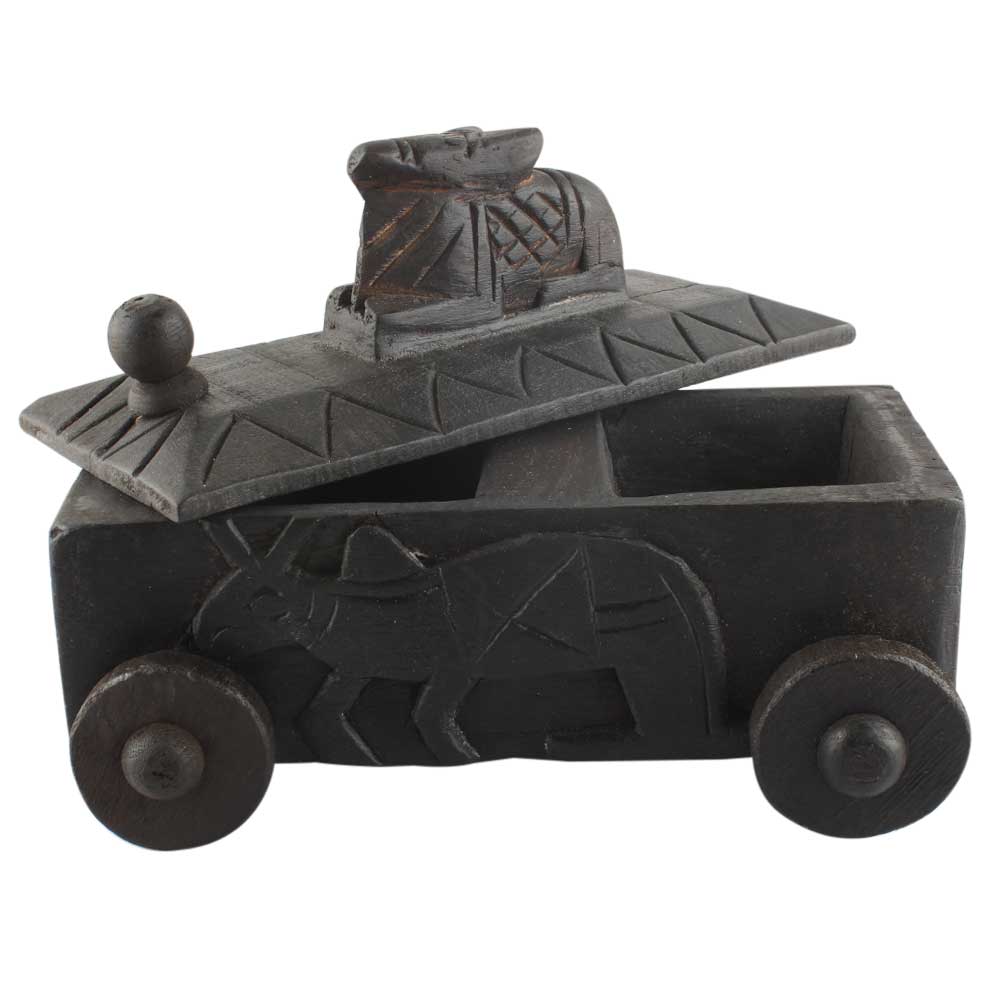 Hand Carved Nandi Wooden Box Spice Storage Box . Ceramic Drawers in Wooden Frame. The Spice Boxes are designed with different patterns. These boxes are made using natural wood which does not harm the purity of spices.