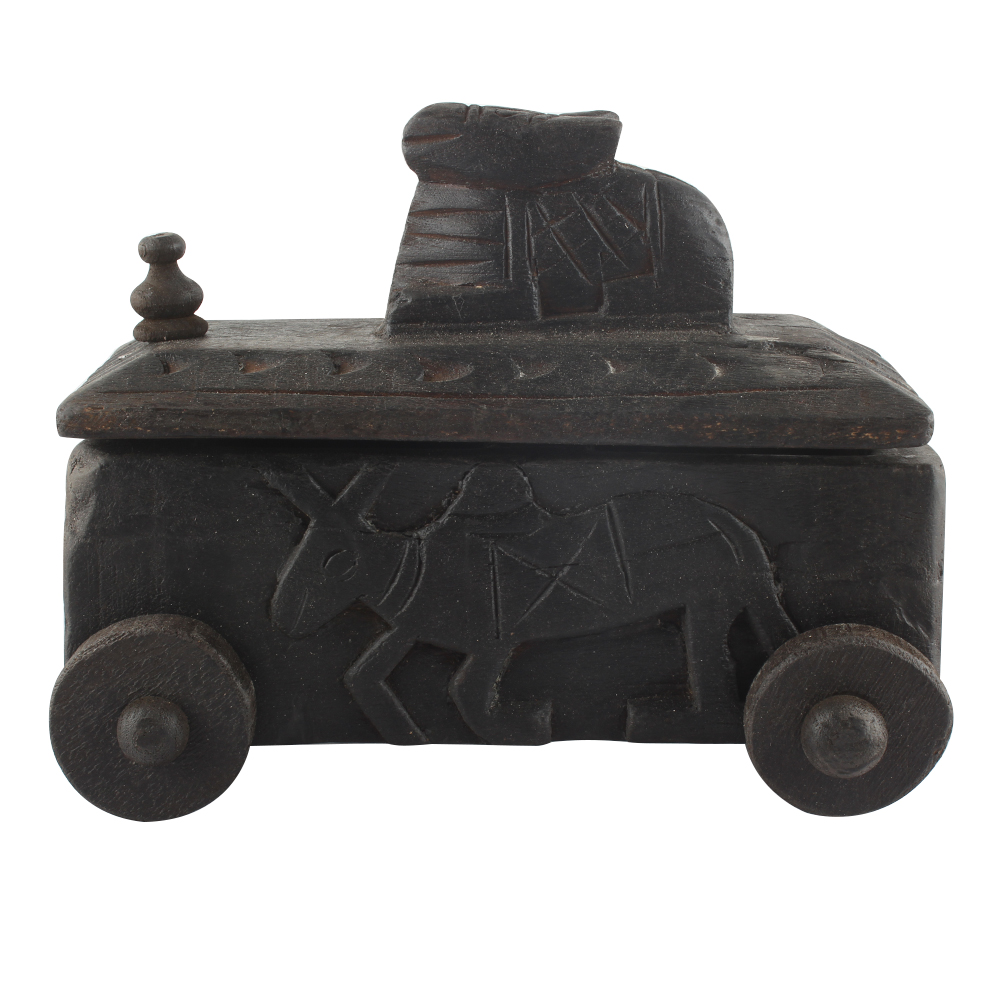 Hand Carved Spice Box Nandi Wooden Box . Ceramic Drawers in Wooden Frame. The Spice Boxes are designed with different patterns. These boxes are made using natural wood which does not harm the purity of spices.