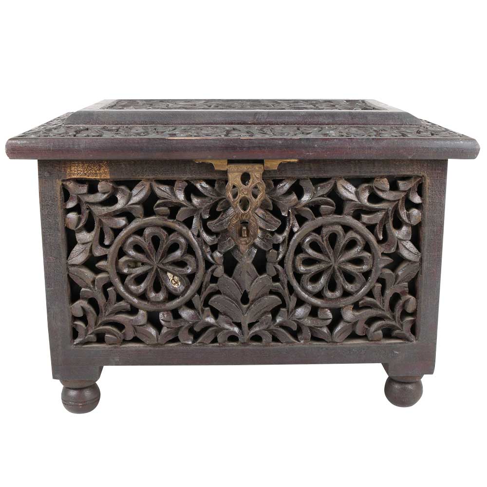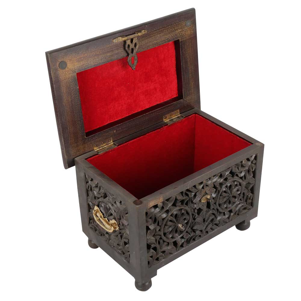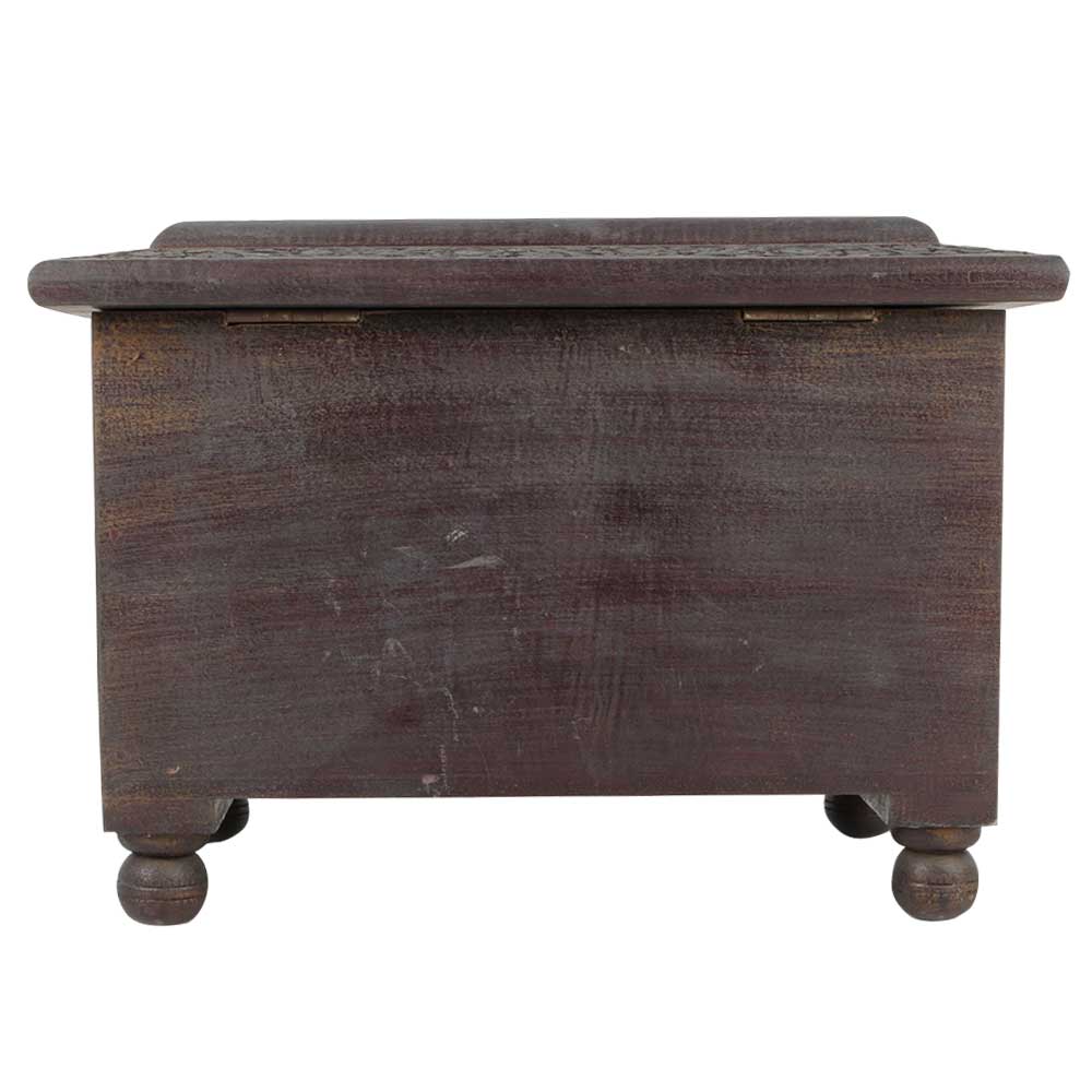 This personalized jewelry box is carved and inside the wooden box bottom is covered by a claret velvet. The lid of wooden box is hinged so it can be opened and closed easily. The box has 4 legs. For protection against moisture, the box is covered by a transparent varnish. This jewelry box with message on the lid is perfect gift for wedding bride. You can also use it for keeping documents, cigars, loose change, sewing accessories like needles and buttons or just use it as a decorative piece of art.