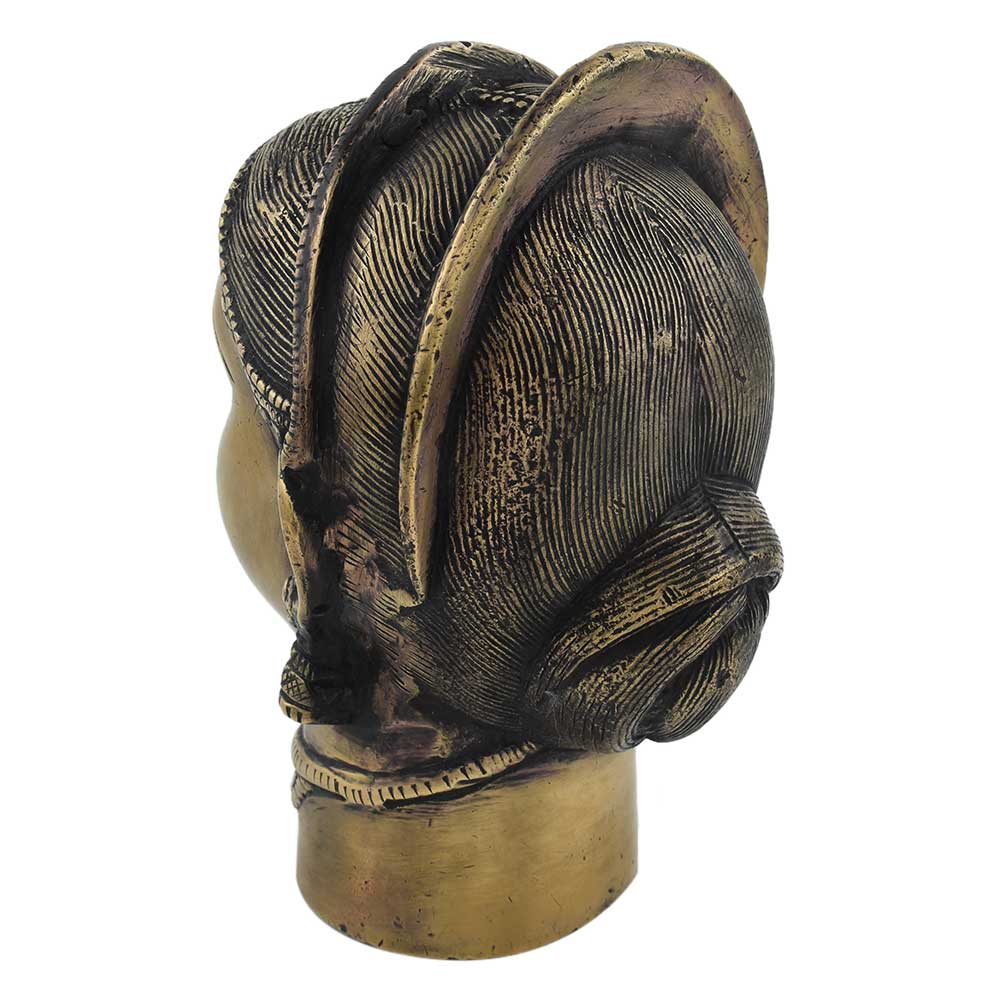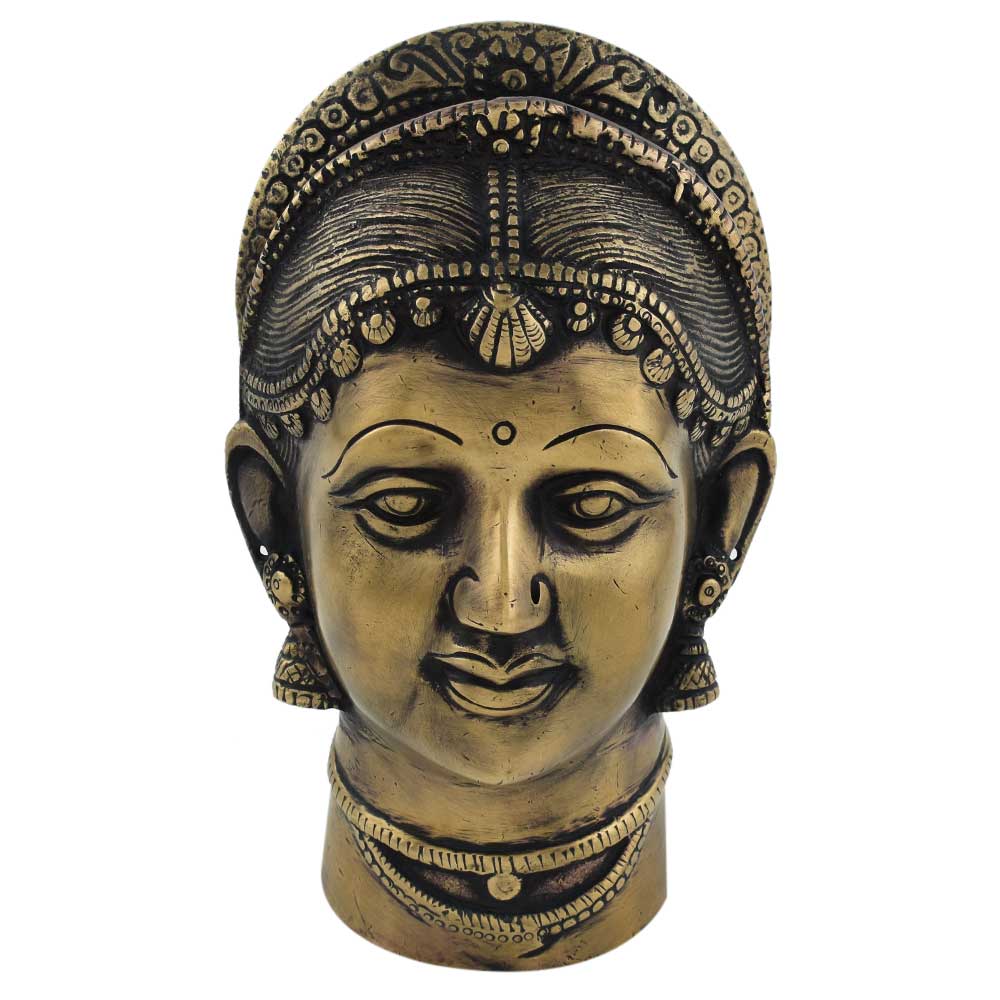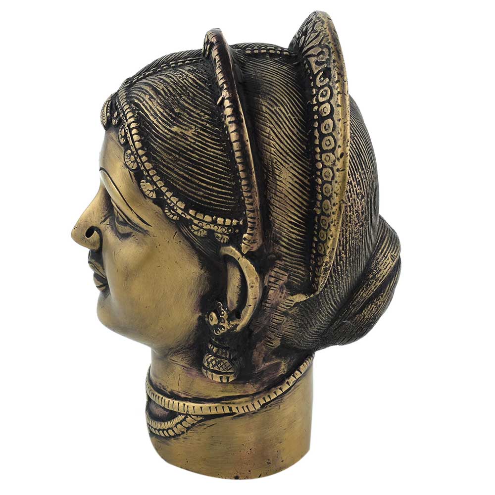 This handcrafted brass Gangaur Gauri face statue is made in solid brass. This decorative deity face can be used as pooja mandir decoration , as table decor Item or for showcase decoration. It comes with a lovely black finish.