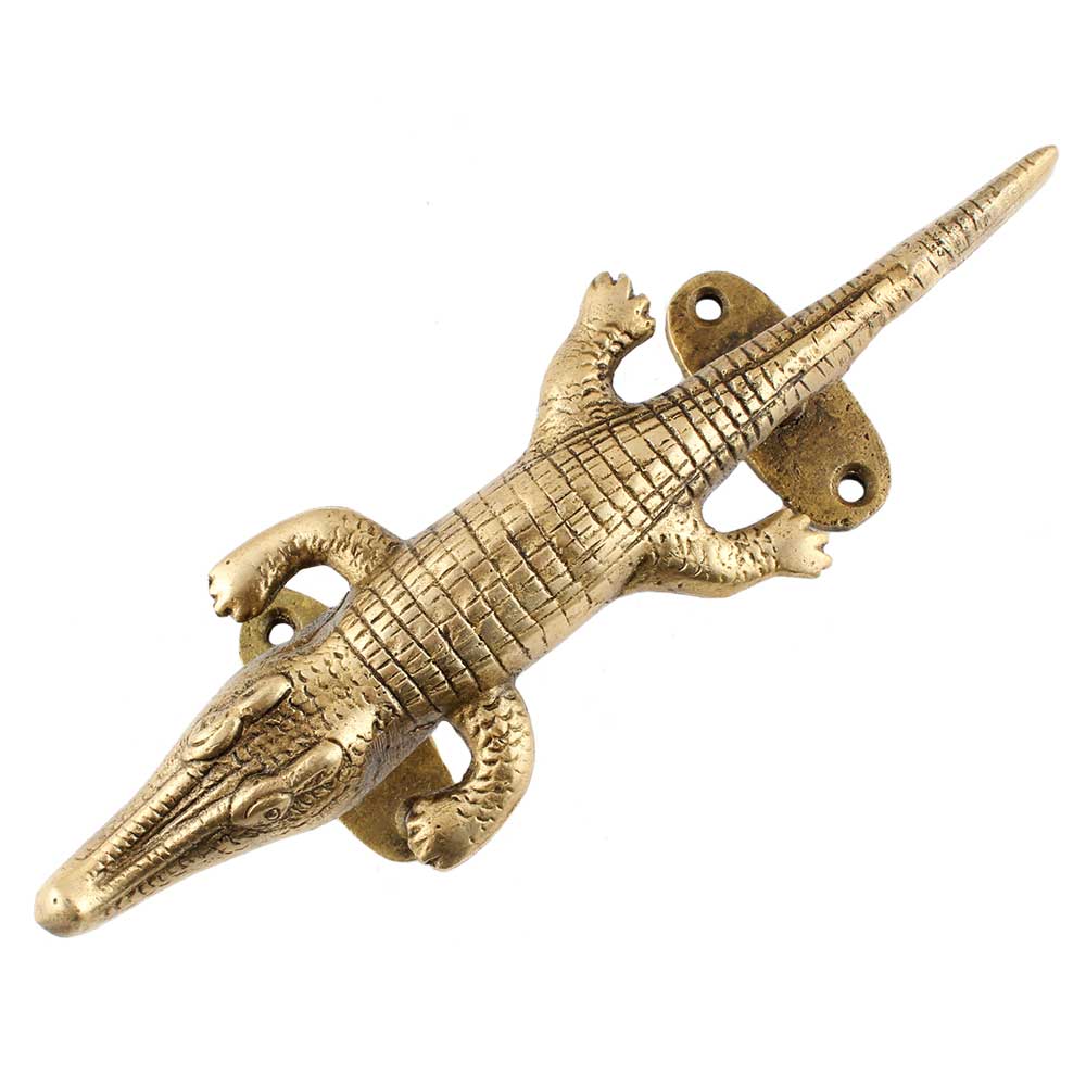 Hand made brass Crocodile door handle that has lovely engravings that makes it look real . It adds a decorative look to ordinary doors ,main door, cabinet and wardrobe door , drawers, door pulls .Wedding gift, house warming gift, anniversary gift for your near and dear ones.