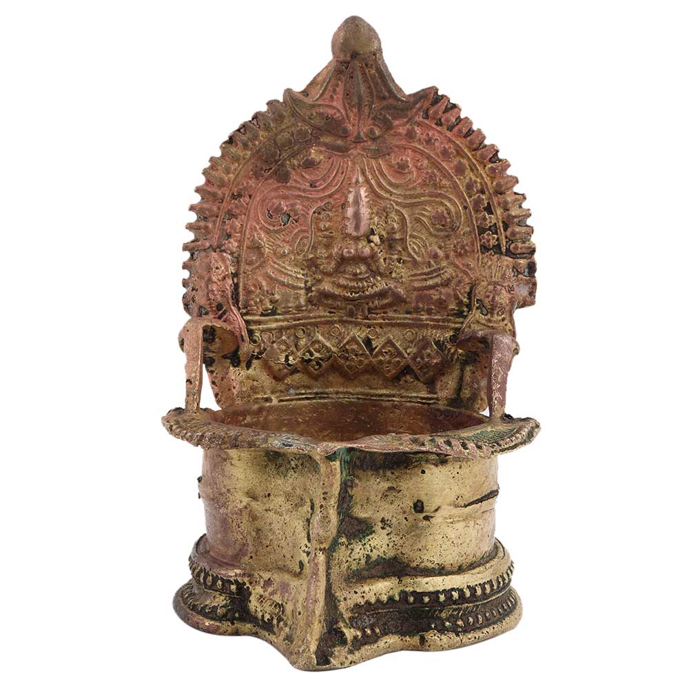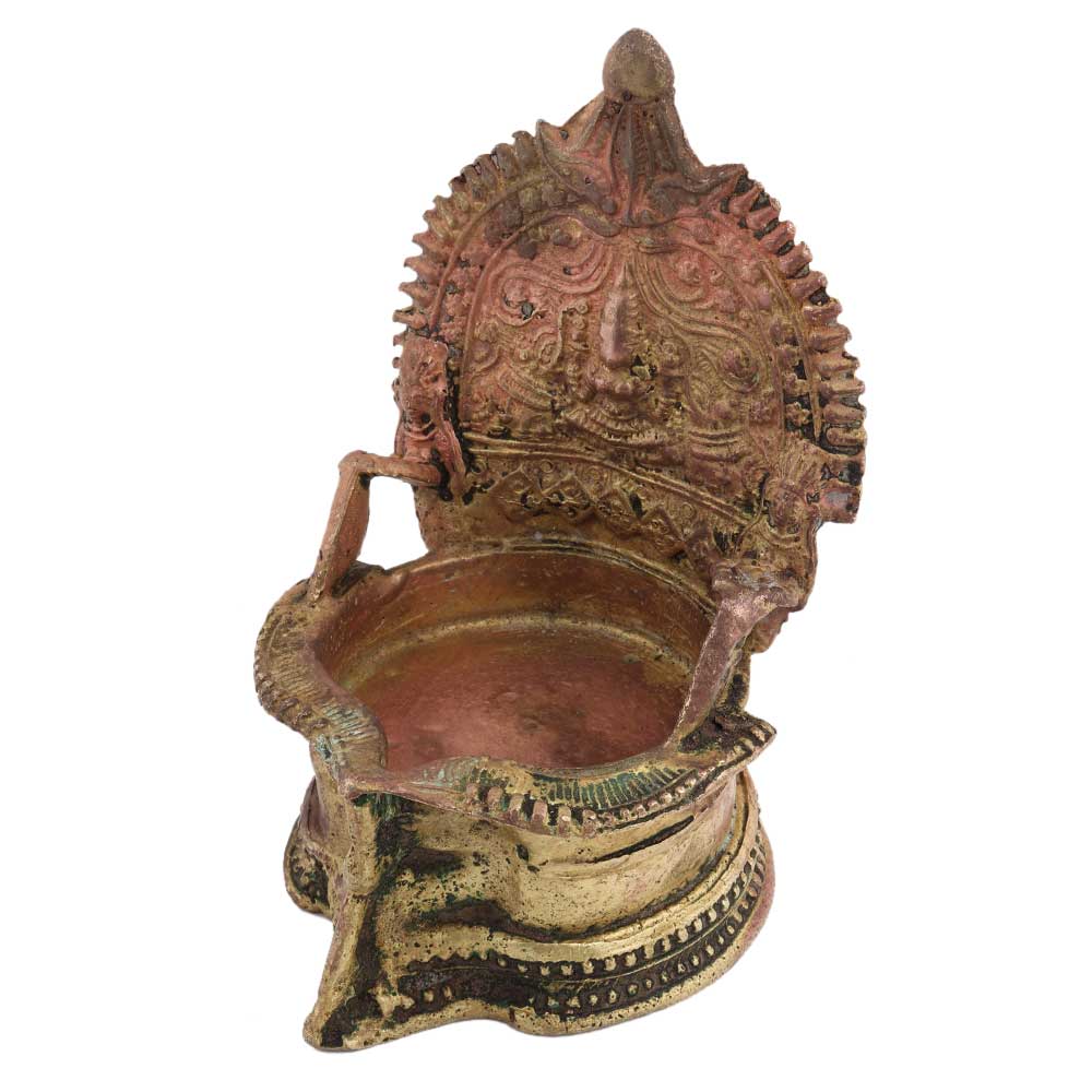 Traditional Brass Laxmi oil lamp . It is made by lost wax process. Adds spiritual flavor to your decor. Vegetable oil, mustard oil or desi ghee can be used to light the lamp with cotton wicks.