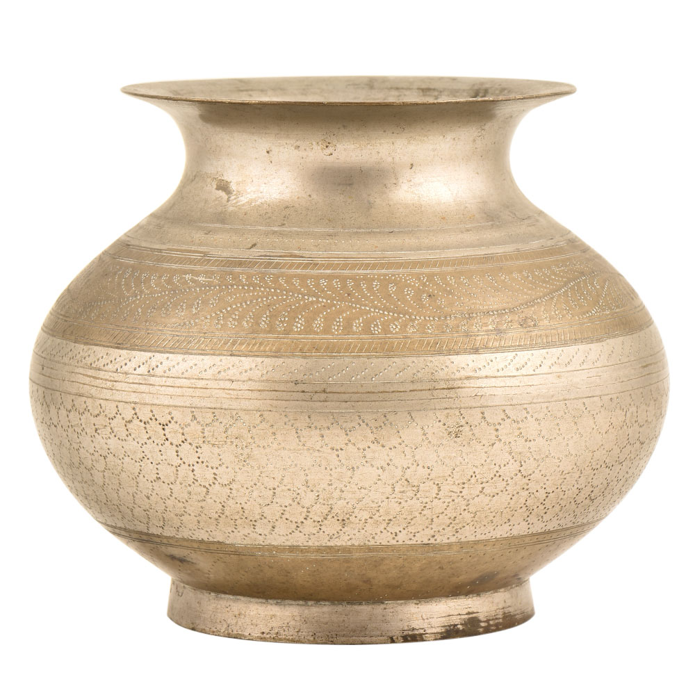 Lovely Traditional Handcrafted Brass Lota Vase or Water Vase. Lota Vases are Vessels for Water, Usually for Cleaning and Ritual Purification. It has Lovely Detailing and Would Make a Great Interior Piece.