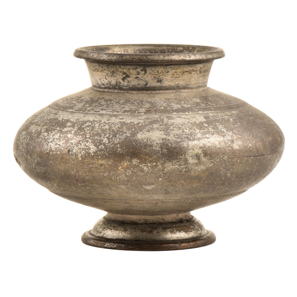 The hand crafted water pot has a wonderful shape with a bottom rim for support, a large belly to hold water a small neck and mouth on the top of the neck to receive water. It a visual interest at home with this vintage piece. This is an attractive addition to your old, wooden dining table or as a showpiece on the corner shelf.