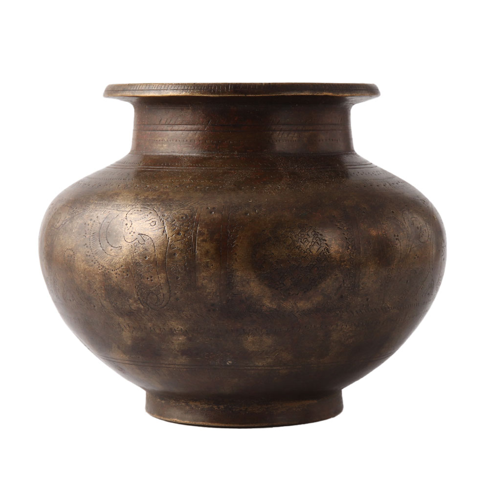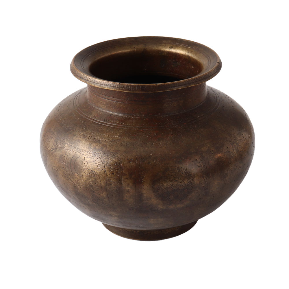 This used brass pot is beautifully decorated  and utilised in Hindu culture for prayers to the gods. It will add attractiveness to your pooja room, house, business, etc. because it is manufactured of the highest grade Brass. The product is individually created and has Handcraft Details embossed on it. It might be a wonderful religious present idea for your family members or friends. You can create it or select it as the ideal gift option for each occasion of a Hindu religious event.Â