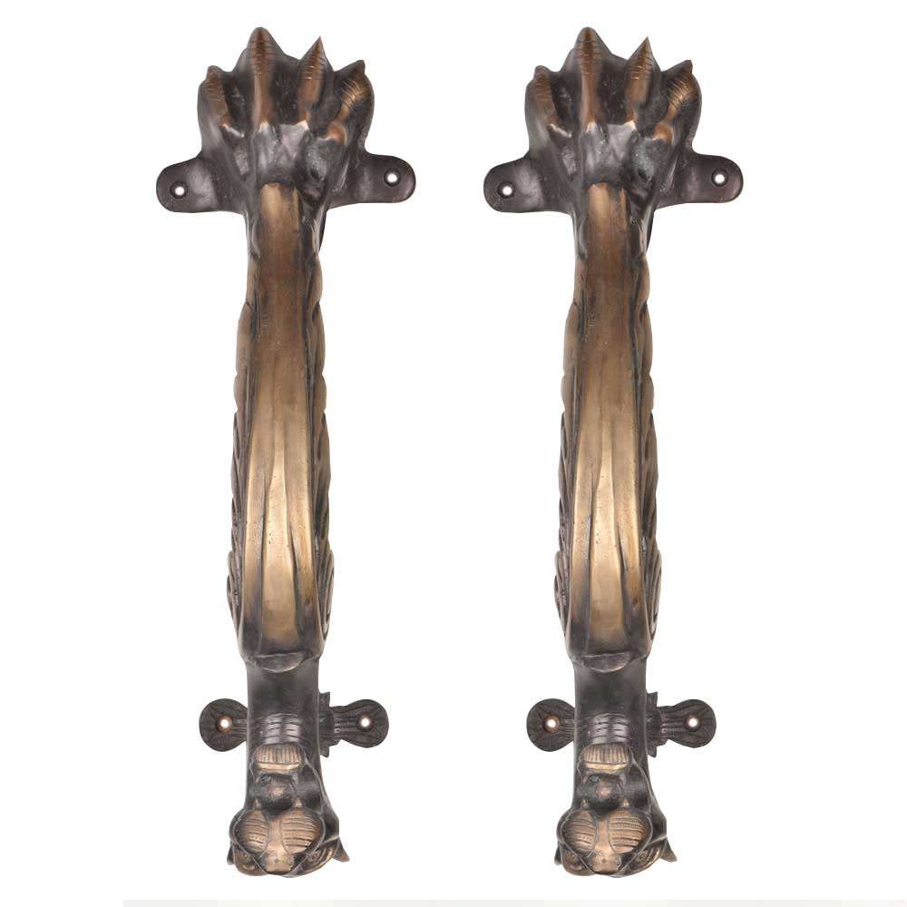 Golden Handmade Bronze Tiger Door Handle with Patina. Ideal for Drawer, Dresser, Cabinet, Wardrobe, Cupboard and Almirah.