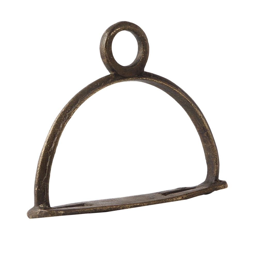 Hand Forged brass saddle foot rest from the civil war. Saddle that looks like it was forged by a blacksmith in the South. Has rust on its surfaces as a result of weather exposure. Surface pitting on the brass is present. possesses a small one-sided tilt. But it's sturdy and in respectable condition for its age. Most likely an early pick-up. Â An excellent Civil War treasure for any collection.