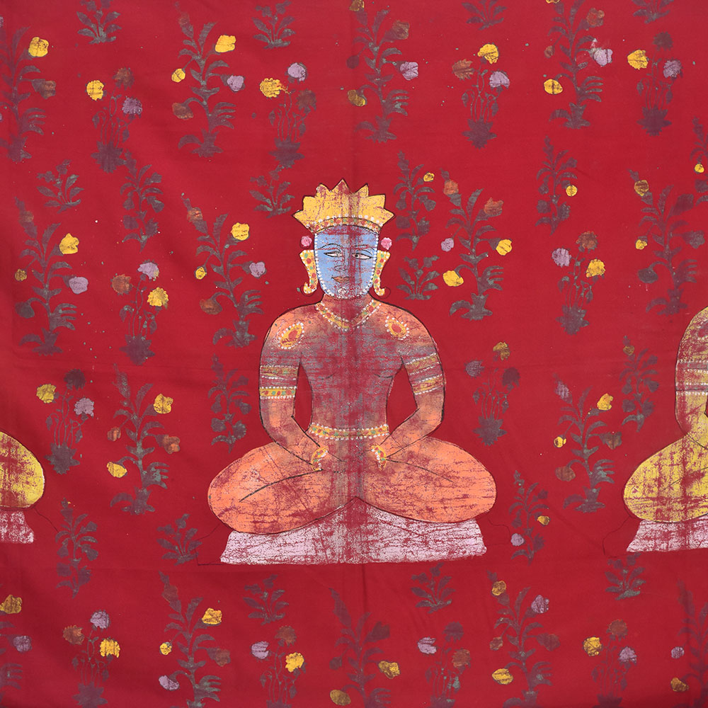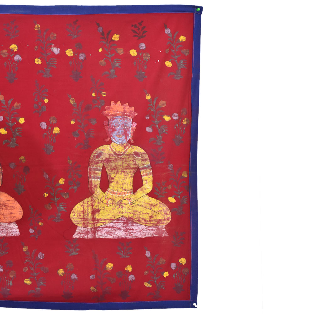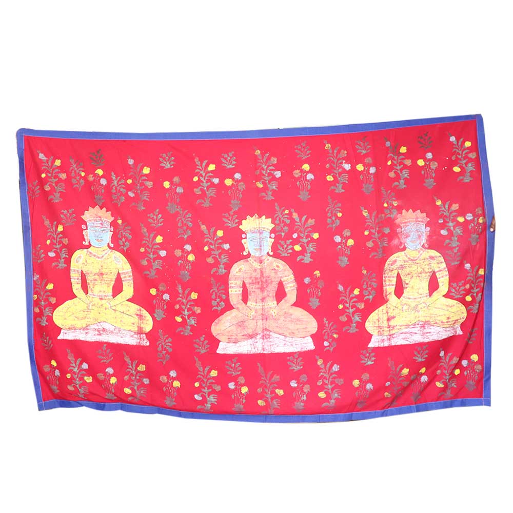 Hand-painted meditation 3 Jain guru on red cloth wall hanging is a beautiful representation of the Jain religion, which has its roots in ancient India. The painting depicts three of the most important Jain gurus or spiritual teachers. Each of these gurus has a significant role in Jainism and is revered by millions of followers around the world. The painting is made on red cloth, which symbolizes purity and devotion. The red color is associated with the fire element and is believed to represent the burning desire for spiritual liberation. The three gurus are depicted in the center of the painting. The painting captures the serene and meditative mood of the three gurus, with their eyes closed in deep contemplation. The intricate details of the painting, such as the delicate folds of their robes, the intricate jewelry adorning their bodies, and the serene expressions on their faces, are a testament to the skill and craftsmanship of the artist. In conclusion, the hand-painted meditation 3 Jain guru on red cloth is a beautiful representation of the Jain religion and its three most important gurus. It is a symbol of devotion, purity, and spiritual liberation, and serves as an inspiration for those seeking enlightenment and inner peace.