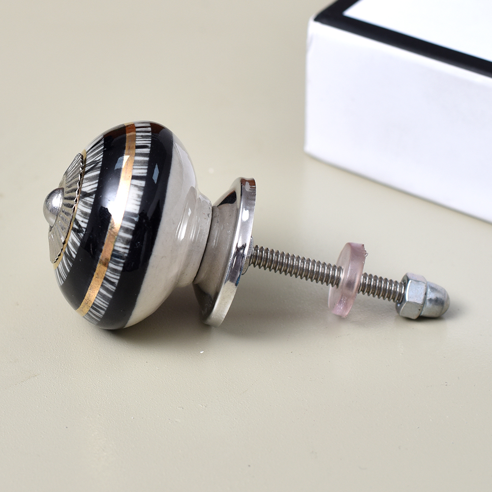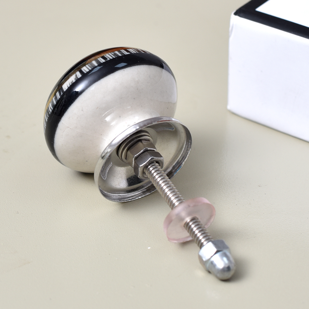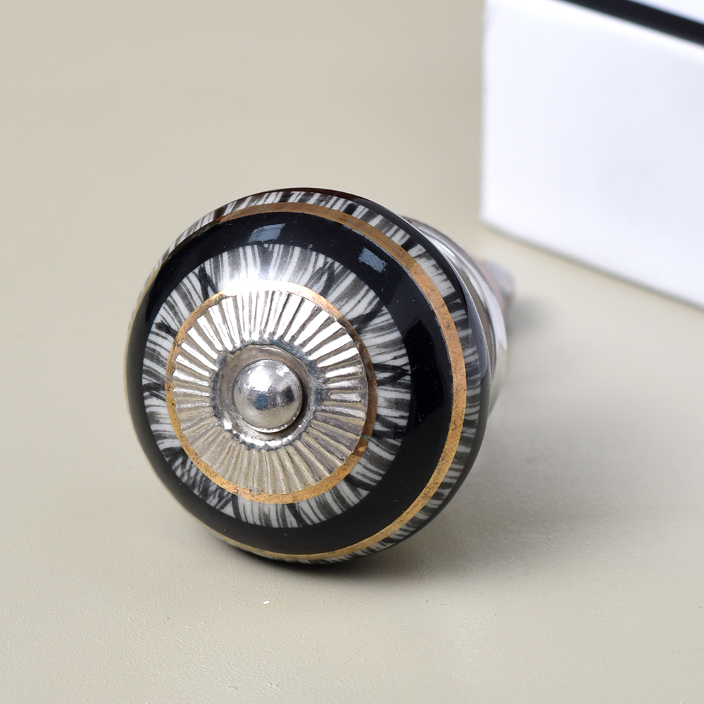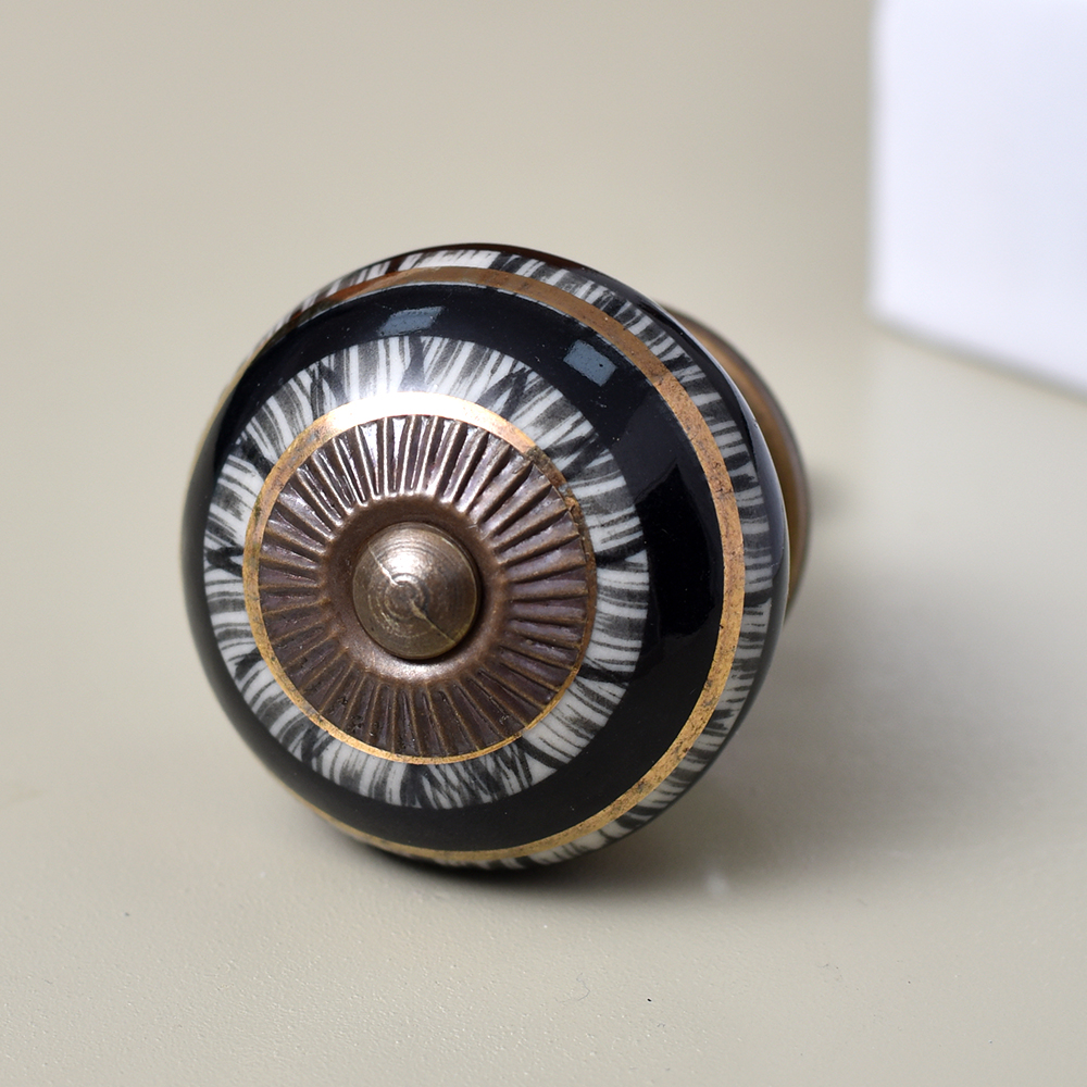 The Hand-Painted Black Design Ceramic Knob features a captivating black pattern on a sleek ceramic surface. The meticulous hand-painted design adds a touch of elegance and artistry to your furniture, ensuring it stands out in any setting.