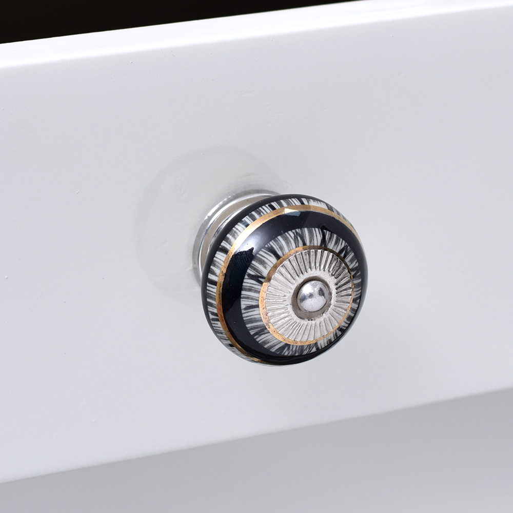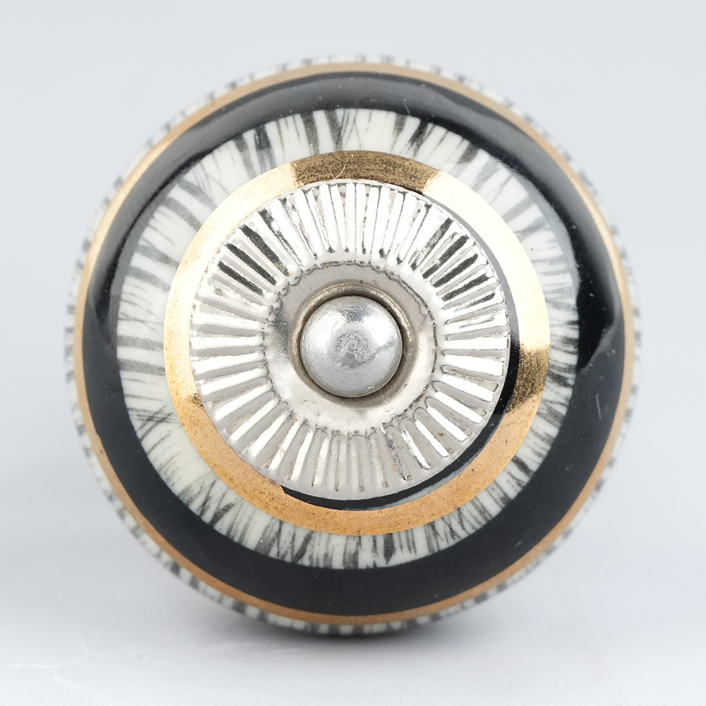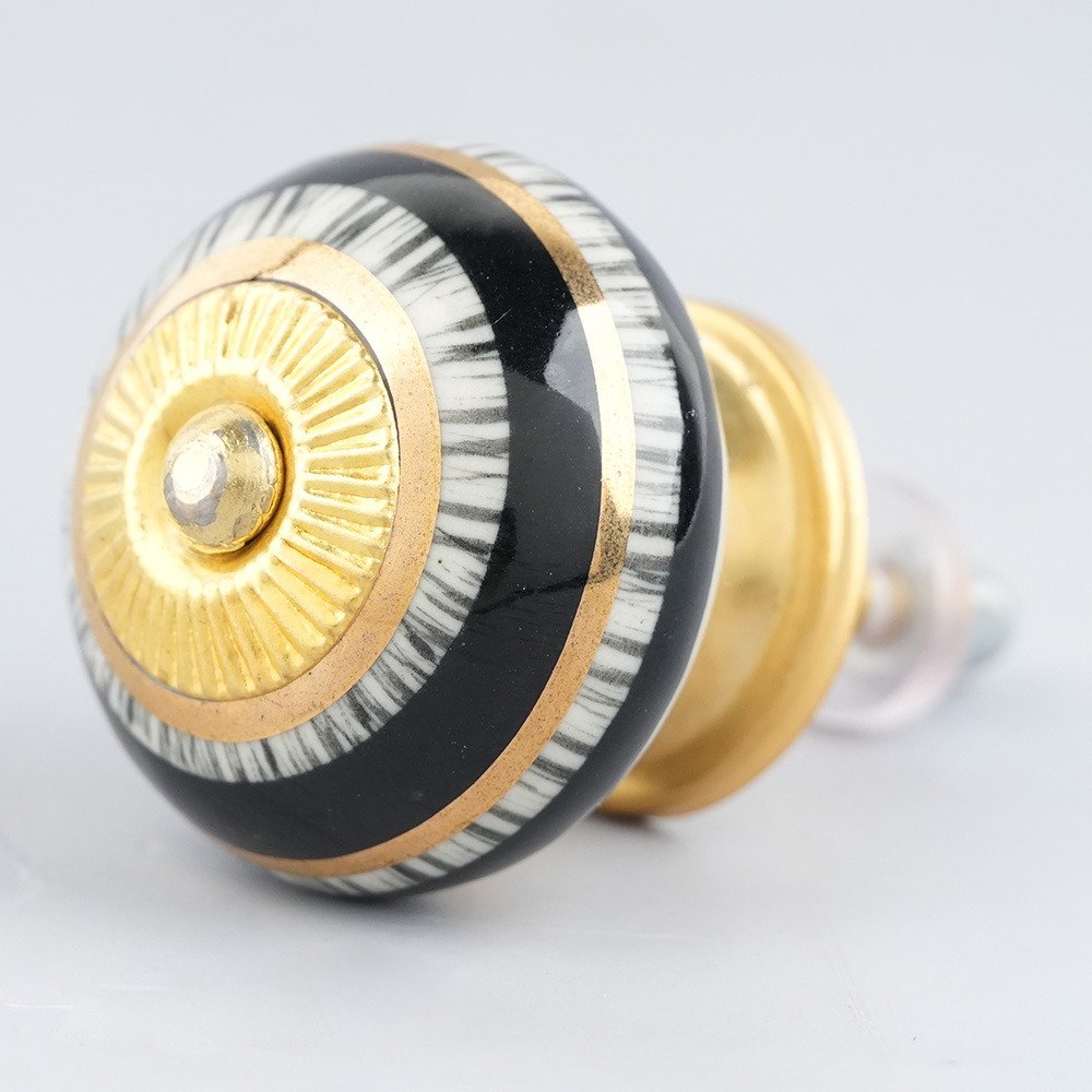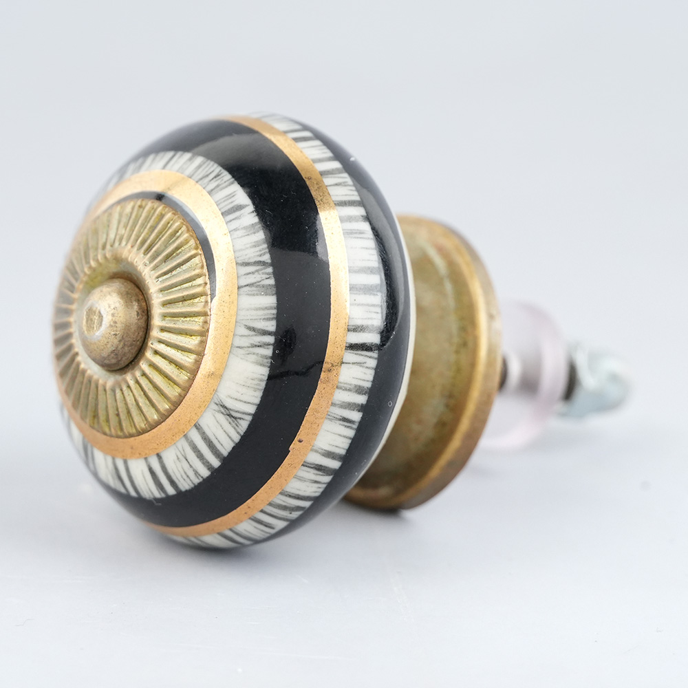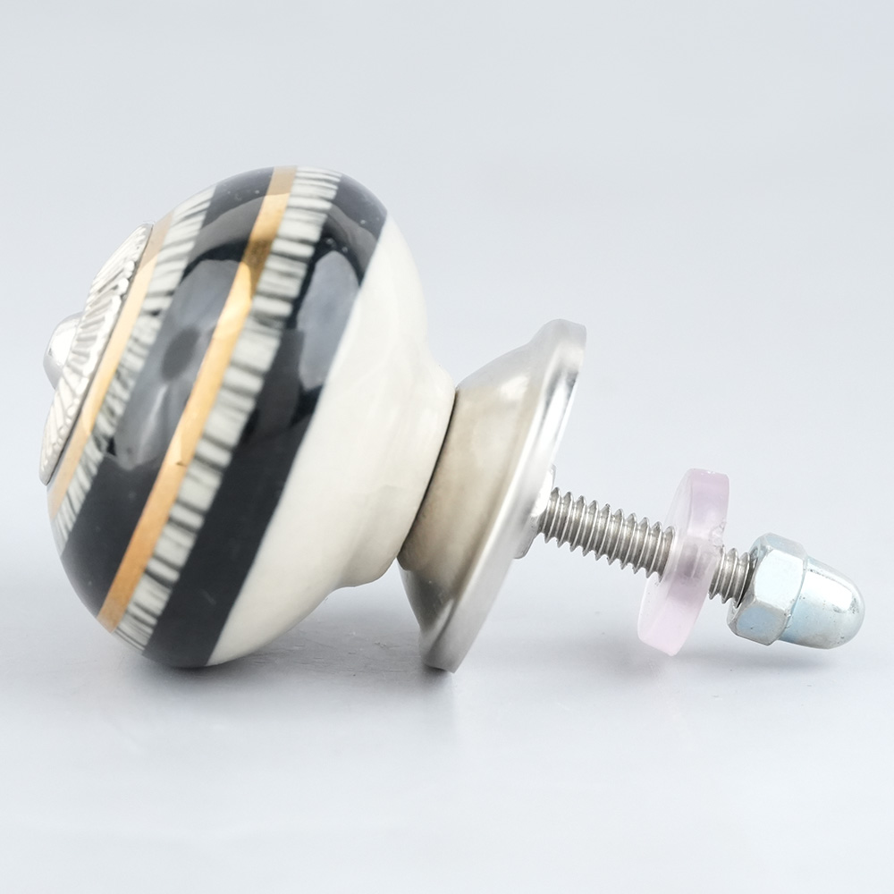 The Hand-Painted Black Design Ceramic Knob features a captivating black pattern on a sleek ceramic surface. The meticulous hand-painted design adds a touch of elegance and artistry to your furniture, ensuring it stands out in any setting.
