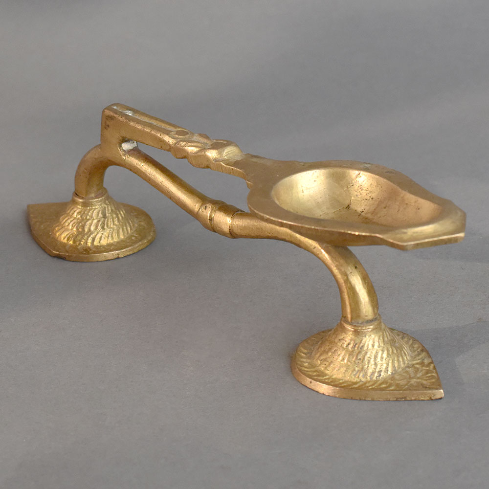 - Vintage brass aarti oil lamp with artistically designed handle
