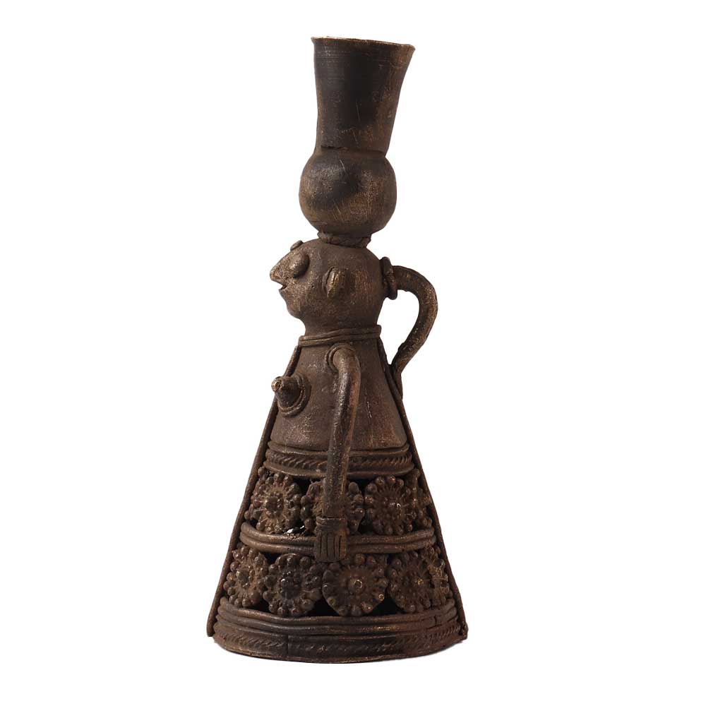 A tempting brass candle stand carved in doll shape with jali work. Handcrafted by skilled artisans, this brass candle holder will add vintage style flair to your home, office, restaurant or hotel interior. Bring this exquisite piece to your home and place it on your table or dining table and place a candle on it to enjoy a memorable dinner with your life partner or family. With its attention to detail, this brass candle holder is an amazing artefact for your vintage collection and a gift for a special or festive occasion for your family and friends.