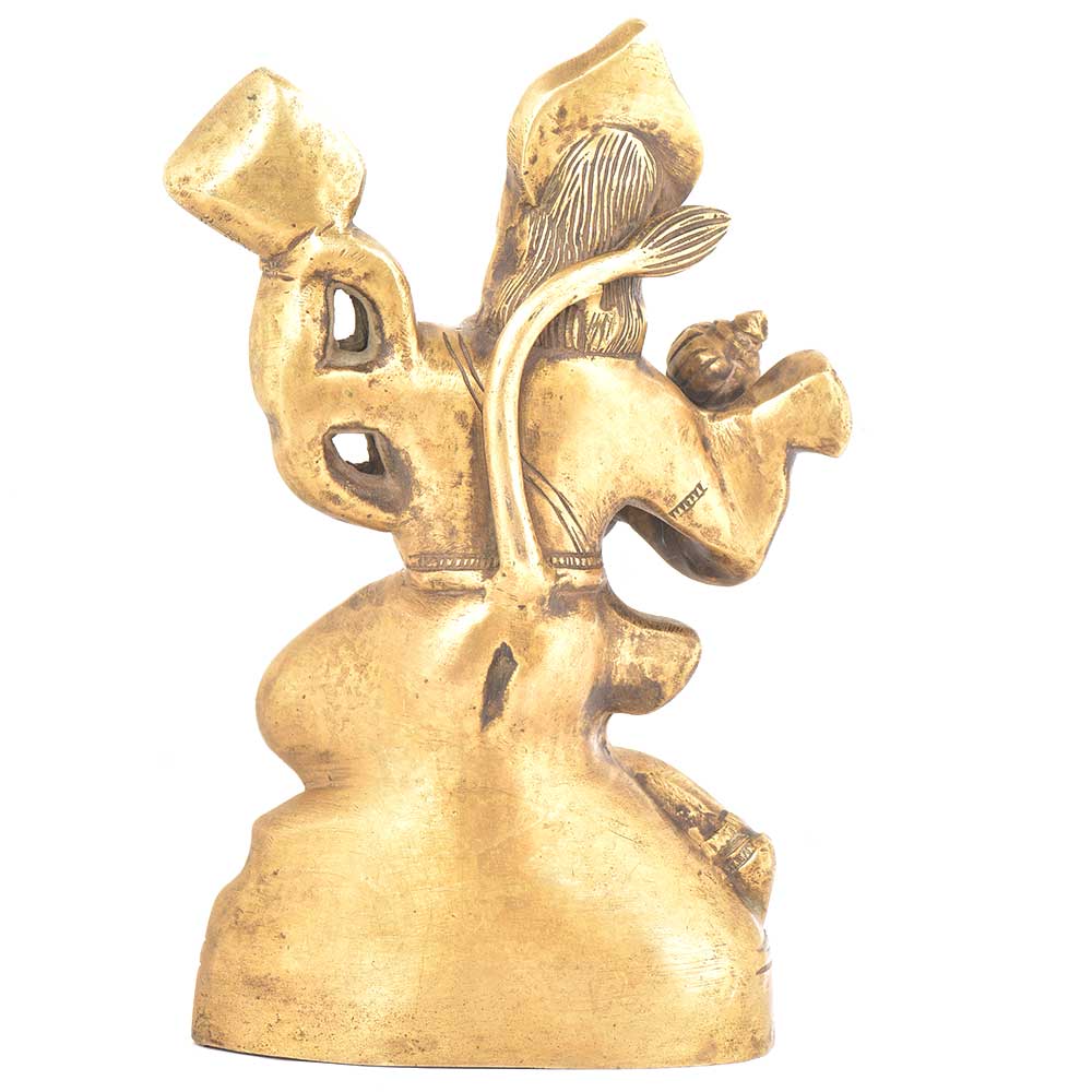 Lord Hanuman was an ardent devotee of lord Rama and an incarnation of Lord Shiva . This brass statue depicts lord hanuman carrying the mountain of herb in one hand ( sanjeevani booti) to save the life of lord ram's brother lakshmana.
