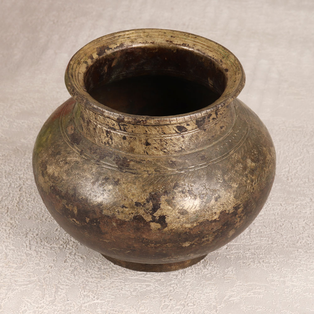 Buy a Vintage Brass Holy Water Pot online from our website and get a hassle free delivery right at your doorstep. Handcrafted by highly skilled artisans from the serene hills of Himachal, this exquisite piece is a testament to India's rich heritage. The pot is adorned with intricate carvings and boasts a lustrous antique brown finish, adding a touch of opulence to your prayer space, havan, or any auspicious occasion. Made from high-quality Brass, this pot is not just a vessel for holy water but also a stunning accent for floral arrangements. Its versatile design makes it suitable for display in homes, offices, restaurants, hotels, or cafes, enhancing the ambiance with its vintage charm. A collector's dream, this artisanal creation is a unique addition to any vintage collection. Celebrate the artistry of Indian craftsmanship and share the gift of divine beauty with your family, friends or relatives on special, festive, or auspicious occasions. Elevate your spiritual experience and decor with this Vintage Brass Holy Water Pot that is a timeless expression of tradition and artistry.