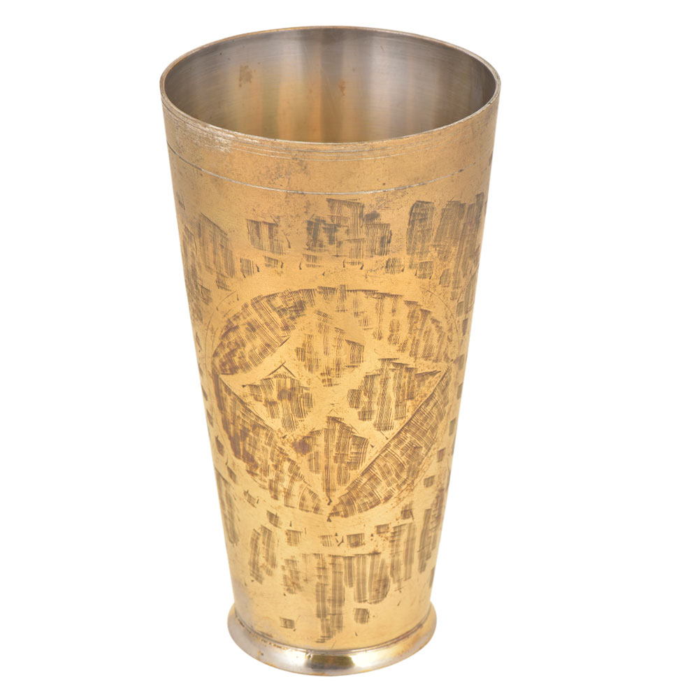 Hand Etched Vintage Looking old lassi glass or cup that is a trademark of north regions of Punjab and Rajasthan make wonderful vases or beakers to store paint brushes or kitchen utensils they are sturdy heavy and unique and is great for home décor and personal gifting.