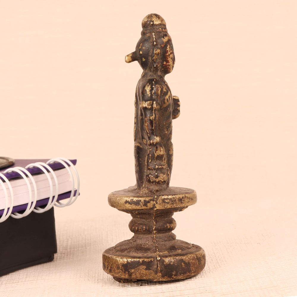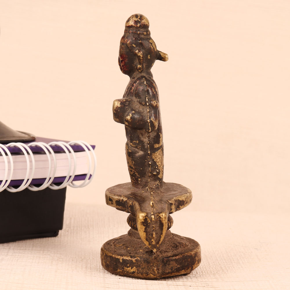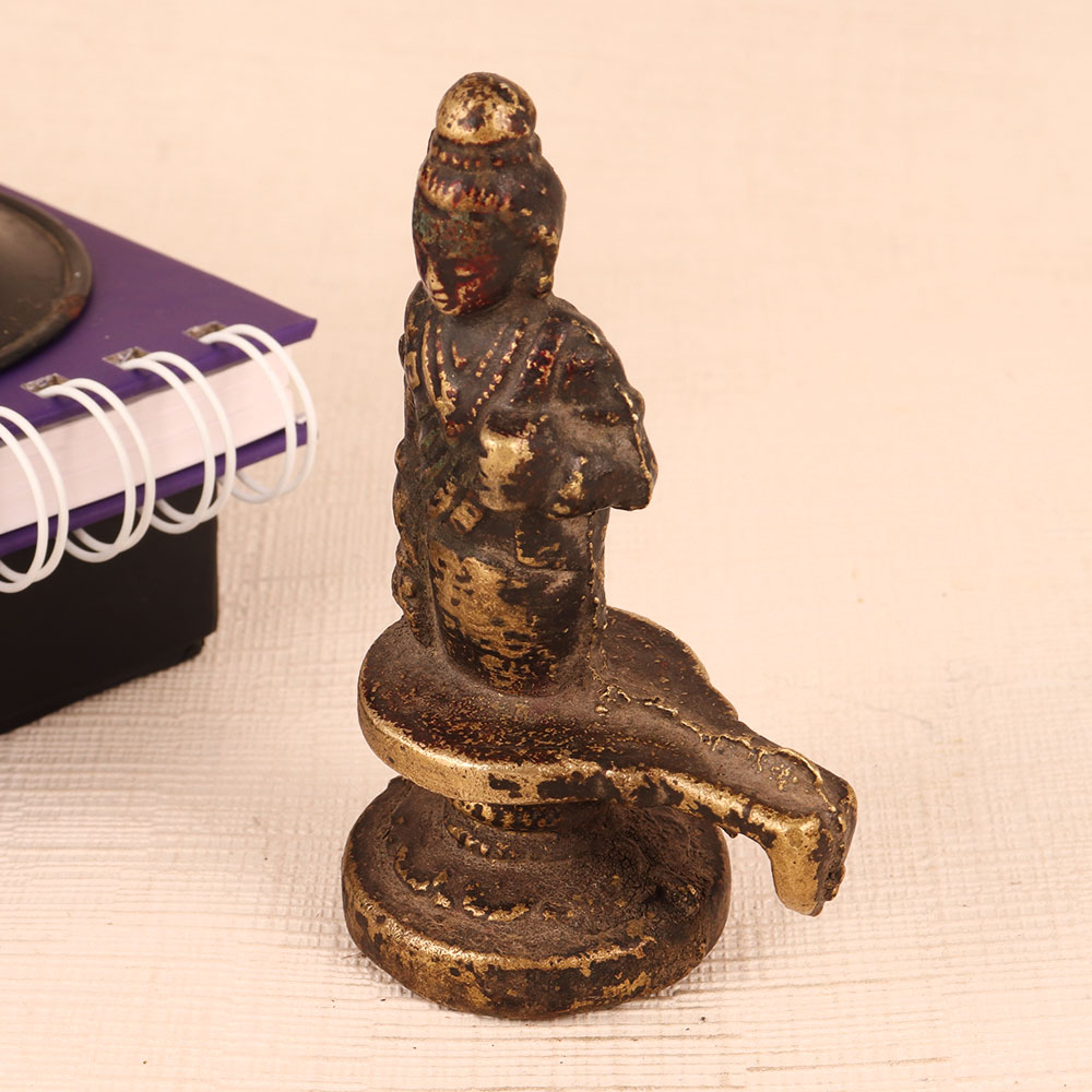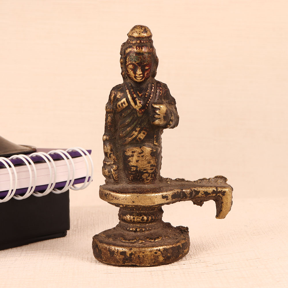 A Yoni Stand with Lord Shiva which is a masterpiece that seamlessly blends artistry, spirituality, and craftsmanship. Handcrafted by talented Indian artisans, this divine creation boasts a rich antique brown finish that exudes timeless charm. Crafted from high-quality brass, it's a symbol of enduring quality and devotion. The Yoni Stand with Lord Shiva is more than just a decorative piece, it's a symbol of reverence and spirituality. Its intricate design and attention to detail make it a focal point in any space. Whether you place it in your home, office, restaurant, hotel, cafe, or shop's prayer room, it radiates an aura of serenity and sanctity, fostering an atmosphere of peace and devotion. This magnificent piece is not limited to religious settings, it's a true work of art that can elevate any decor style. Collectors will appreciate its antique allure, making it a valuable addition to vintage collections. Moreover, the Yoni Stand with Lord Shiva makes for an unforgettable gift for your family, friends or relatives on special, festive, or auspicious occasions. It embodies a profound sense of spirituality, love, and culture, making it a gift that resonates deeply with the heart and soul. Bring home a piece of Indian heritage and spirituality with the Yoni Stand with Lord Shiva that is the testament to India's artistic legacy and a beacon of divinity in any setting.