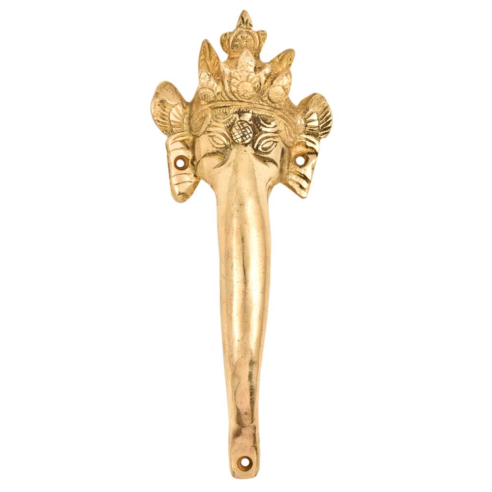 This handcrafted brass Elephant head with decorative engravings on the forehead with an exquisite finish of the ears, tusk, eyes and the regal trunk is made by expert artisans of India. This door handle is durable, sturdy and will certainly garner attention from your guests.