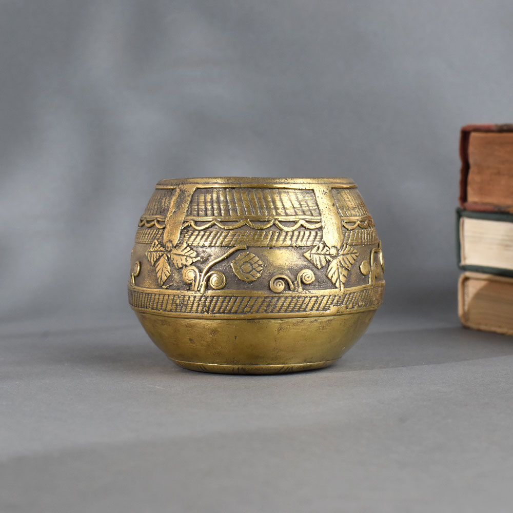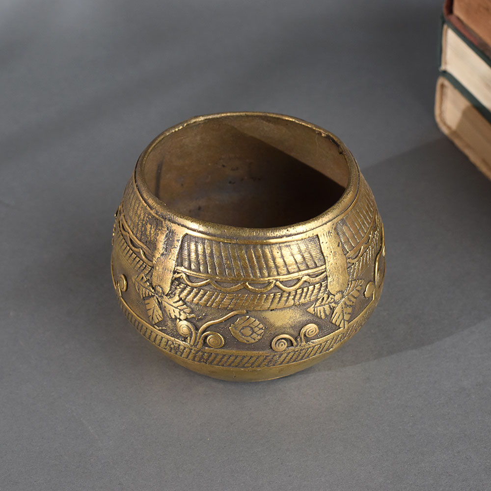 Discover the charm of Indian heritage with this beautifully handcrafted brass measuring pot from Odisha. Traditionally used in rural households for measuring grains and pulses, this pot is a testament to the region’s skilled metal artisans. The detailed floral and geometric engravings, along with its warm brass finish, make it a stunning piece of décor that tells a story of culture and tradition. Whether placed on a shelf, used in festive arrangements, or gifted as a keepsake, it adds authenticity and elegance to any setting.