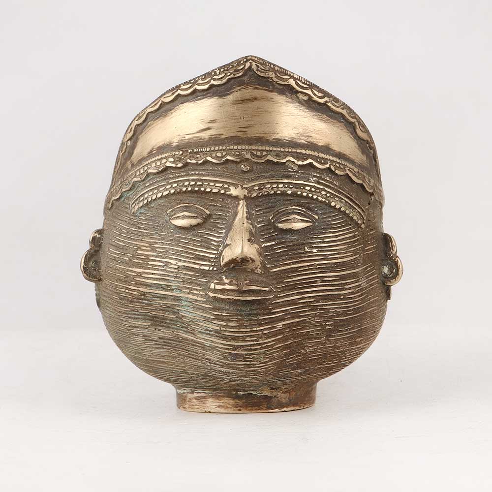 This captivating Brass Tribal Man Face Pen Stand is a mesmerizing work of art exuding a timeless charm. Crafted with precision from high-quality brass, this piece showcases an antique brown finish that adds a touch of vintage allure to any space. Handmade by skilled artisans, each detail reflects the rich cultural heritage and artistic prowess of traditional craftsmanship. Versatility is at its core, making it an ideal addition to various settings. At home or in the office, it beautifully complements your decor while serving as a practical pen stand or a charming small flower pot holder. In restaurants, hotels, and cafes, it stands as an eye-catching decorative piece that sparks conversations and captures the essence of tribal artistry. Elevate your exhibition displays or vintage collections with this unique treasure, as it imparts an air of sophistication and history. Furthermore, as an exceptional gift choice, it expresses thoughtfulness and sentiment on special or festive occasions, leaving a lasting impression on your loved ones. Embrace the allure of heritage and craftsmanship with the Brass Tribal Man Face Pen Stand, a masterpiece that seamlessly merges form and function.