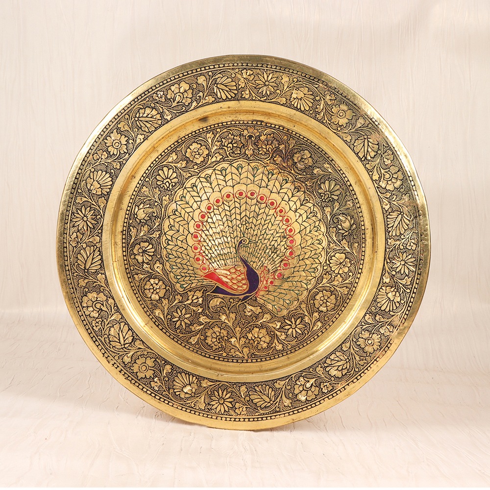 Unlock the door to a bygone era of unparalleled craftsmanship and timeless elegance with our vintage brass round hanging plate. Meticulously handcrafted with intricate peacock engravings and mesmerizing enamel work in rich brown and vibrant red hues, this captivating piece is a true testament to the artistry of the past. Imagine the admiring glances and conversations this stunning plate will inspire as it takes pride of place in your living room, hallway, or bedroom. Let the captivating peacock design transport you and your guests to a bygone era, evoking a sense of timeless elegance and refined sophistication. Designed for the discerning homeowner who appreciates the beauty of the past, our vintage brass peacock plate is a must-have addition that will breathe new life into your interior. Upgrade your space with this exquisite work of art and bask in the compliments of your guests as they marvel at your impeccable taste and eye for detail.