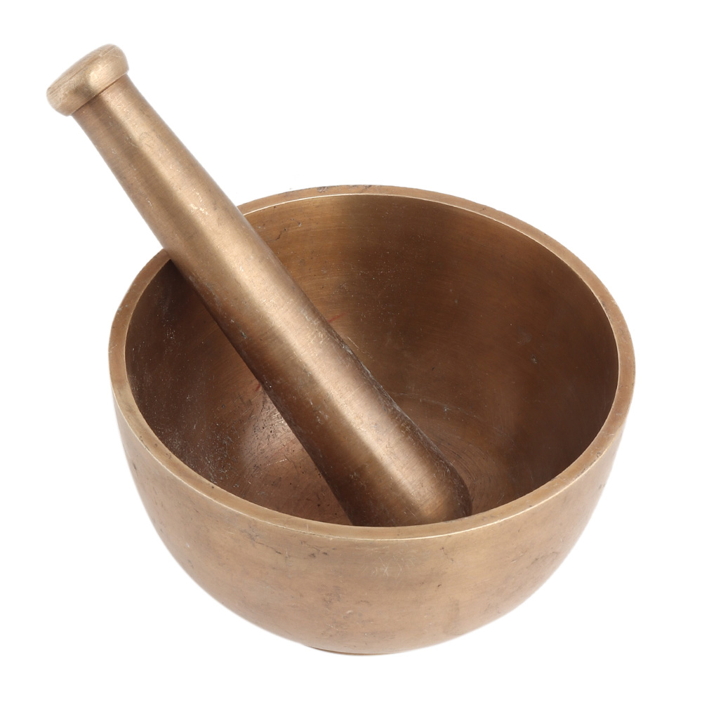 This brass drinking lota or beautiful potted vase is adorned with two sets of embossed horizontal stripes and placed on an elevated stand, near the desk or bed.