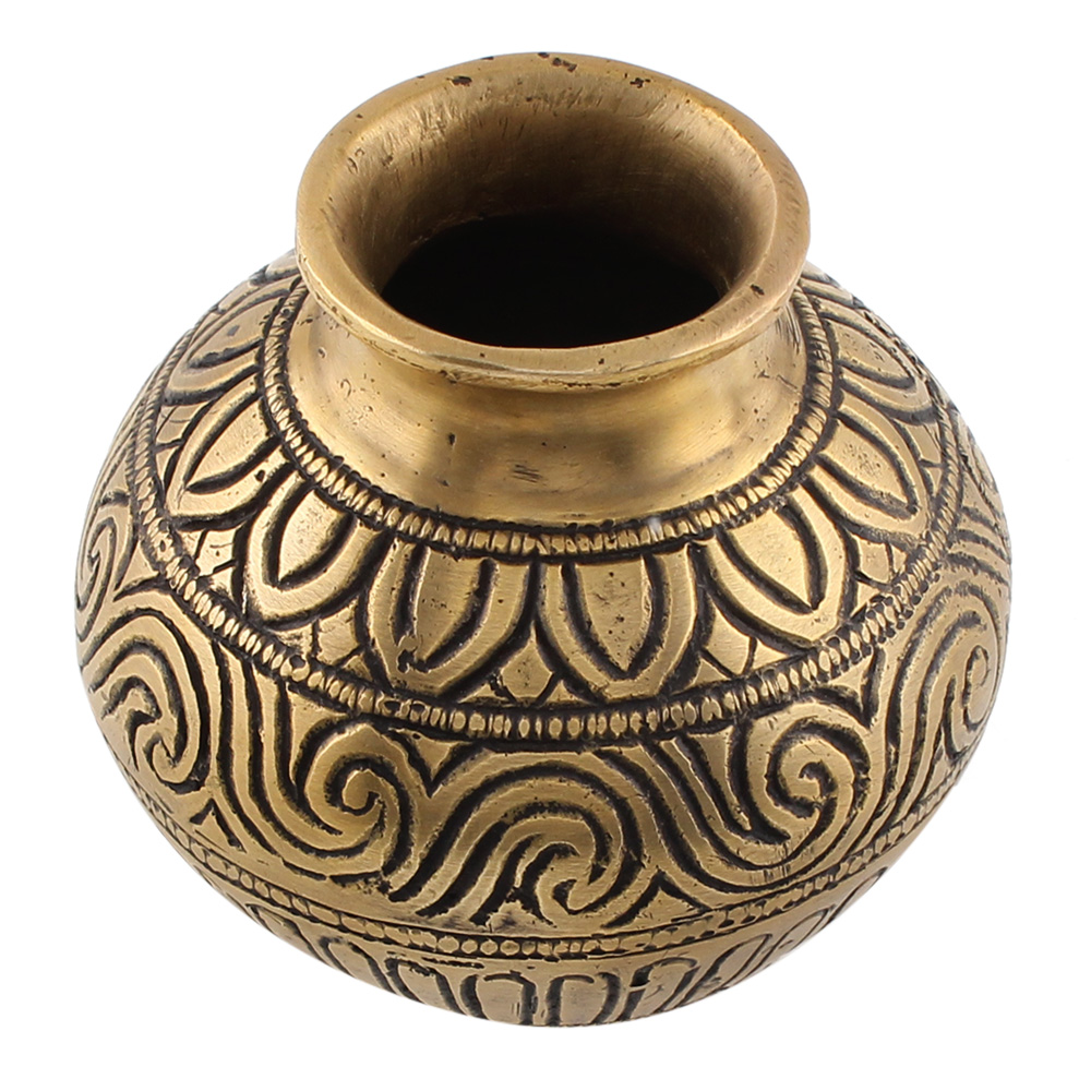 This finely carved brass pot is ideal for keeping in the temple. This kalash can be used for pooja, house décor, weddings, and other occasions. Perfect gift for Diwali, weddings, rakhi, anniversaries, festivals, poojas, and birthdays.