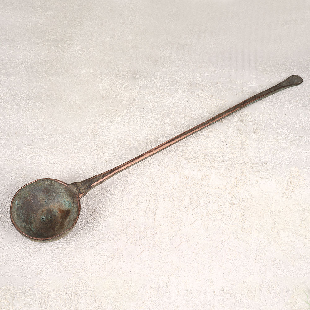 This Vintage Brass Cooking Spoon is a piece of culinary history that transcends time and serves as a unique decor item for your living spaces. Crafted by highly talented Indian artisans, this spoon bears the mark of their meticulous craftsmanship and is a testament to the rich heritage of traditional metalwork. Handmade from high-quality brass, the spoon not only emanates a vintage charm but also boasts a lasting durability. With its authentic vintage finish, it tells a story of countless meals prepared with love and care. While it once graced kitchens as a utilitarian tool, we now recommend showcasing it for its aesthetic appeal. Ideal for home, office, restaurant, hotel, or cafe settings, this vintage brass spoon seamlessly complements diverse decor styles. Its versatile nature allows it to become a captivating addition to your vintage collection or an exquisite gift for your family, friends or relatives on special, festive, or auspicious occasions. Embrace the nostalgia of a bygone era and bring a touch of timeless elegance to your surroundings with this Vintage Brass Cooking Spoon.