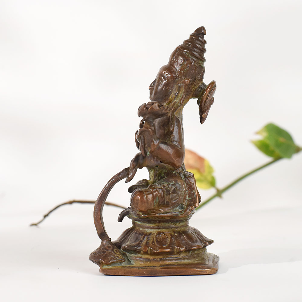 Bring timeless divinity into your home with this handcrafted vintage copper goddess Rajarajeshvaristatue, beautifully detailed and rich with old-world charm. Made using traditional metal-craft techniques, the sculpture reflects the serene grace and spiritual symbolism associated with feminine divine energy. Its aged copper patina, subtle texture variations, and artisanal imperfections make it a meaningful decor piece for those who appreciate heritage art, sacred collectibles, and Indian spiritual decor. Perfect for meditation spaces, home altars, study tables, spiritual corners, and gifting, this statue carries an authentic vintage appeal that enhances any environment with a sense of peace and cultural depth. Whether youre a collector of antique-style idols or someone seeking a soulful decor element, this handcrafted copper figure brings warmth, reverence, and artistic value to your space.