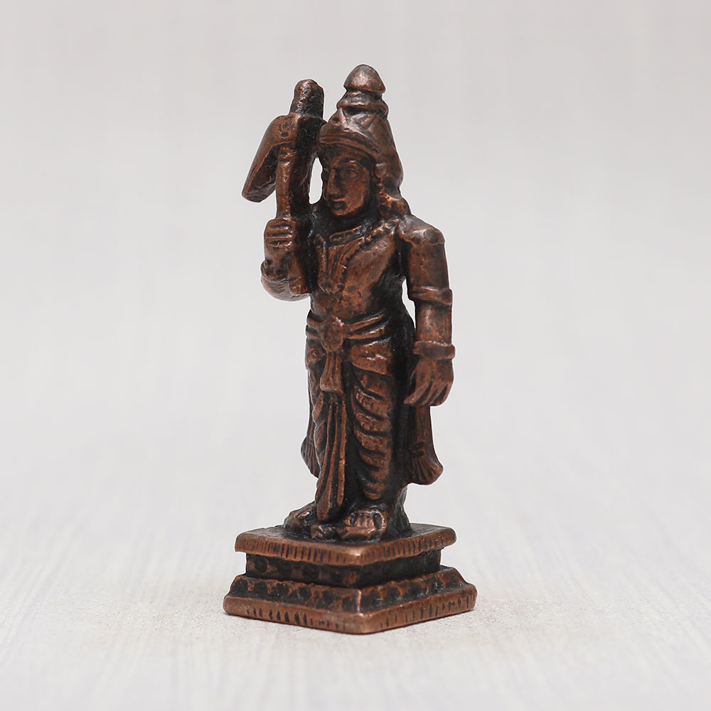 Buy a copper statue of Lord Balram online who is the elder brother of Lord Krishna, exquisitely handcrafted by professional artisans from India with attention to detail. Standing proudly on a platform, Lord Balram holds his iconic plough weapon in his right hand, emanating an aura of divine power and grace. This divine creation is fashioned from high-quality copper, giving it a timeless vintage-style finish that adds an air of antiquity and reverence. The statue is an ideal addition to your prayer room at home, office, restaurant, cafe, or shop, creating a sacred ambiance and invoking a sense of spiritual connection. The eye-catching detailing of the statue makes it a perfect showpiece for exhibitions, enhancing any space with its captivating presence. Its versatility also extends to being an exquisite item for decoration and collection, adding an aura of holiness to any environment. Moreover, this deity holds immense significance in Hinduism, symbolizing strength, righteousness, and devotion. Placing this statue in a temple for worship will undoubtedly inspire deep reverence and devotion. It also makes for a thoughtful and cherished gift for loved ones on special, festive, or auspicious occasions, truly embodying the essence of divine blessings. For those seeking Hindu god statues to buy, this divine Lord Balram murti is available online, offering a unique opportunity to bring home a powerful representation of spirituality and devotion.