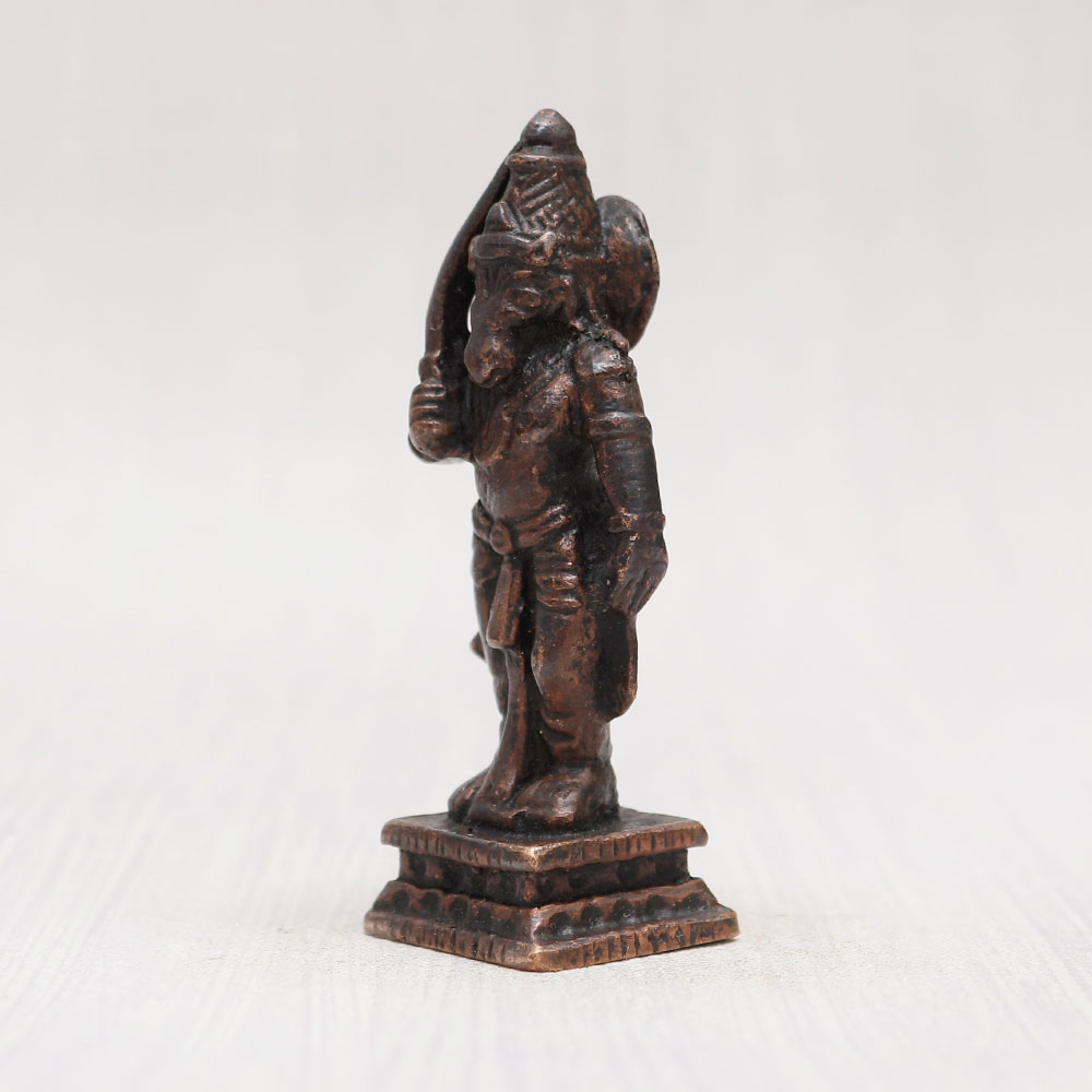 Buy a Copper Lord Hayagriva statue online that is expertly crafted by highly skilled and experienced Indian craftsmen with precision and care. Standing gracefully on a platform, this divine masterpiece is made from high-quality copper, exuding a vintage-style finish that adds an aura of timeless elegance to any setting. Ideal for your prayer room at home, restaurant, cafe, or shop, this stunning deity statue is a testament to fine craftsmanship. Its captivating detailing captures the essence of Lord Hayagriva, making it a perfect item for exhibitions, decorations, and collections. This Hindu god idol for home temple online is not only a beautiful decorative piece but also holds immense spiritual significance, fit for worship in temples. It's a thoughtful gift for your loved ones on special, festive, or auspicious occasions, as it symbolizes blessings, knowledge, and prosperity. Embrace the divine presence of Lord Hayagriva with this mesmerizing copper statue, a cherished addition to any space.
