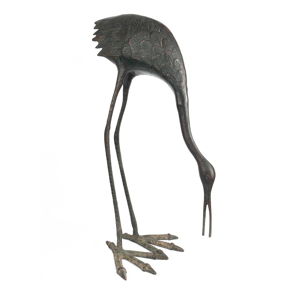 Capture the elegance and grace of this lovely brass handmade crane bird statue with ling legs and slender neck and lovely beak. Ready to enhance the beauty of your home interiors, garden interiors, hotel and restaurant interiors, gifting option for your family and friends.