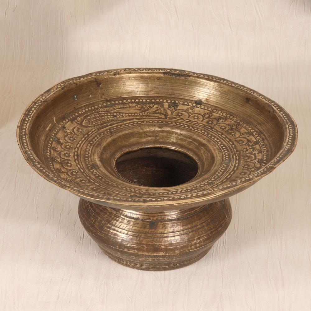 Bring the allure of ancient artistry into your home with the captivating Vintage Brass Silapchi Pot. This exquisite piece, crafted with meticulous attention to detail, is a testament to the enduring legacy of traditional metalworking. Imagine the warm, glowing presence of this Silapchi pot gracing your living room, bedroom, or entryway. The rich, burnished tones of the brass create a striking contrast against the delicate, intricate engraving, drawing the eye and evoking a sense of timeless beauty. Whether you choose to display it as a standalone accent piece or use it to hold your favorite plants, flowers, or decorative items, this pot will transform your space into a sanctuary of refined elegance. The Vintage Brass Silapchi Pot is a must-have for those who appreciate the beauty of handcrafted, heirloom-quality decor. Its durable construction ensures it will withstand the test of time, while its versatile design allows it to seamlessly integrate into a variety of interior styles, from modern minimalist to rustic chic. Elevate your living space and make a lasting impression with this stunning brass masterpiece.