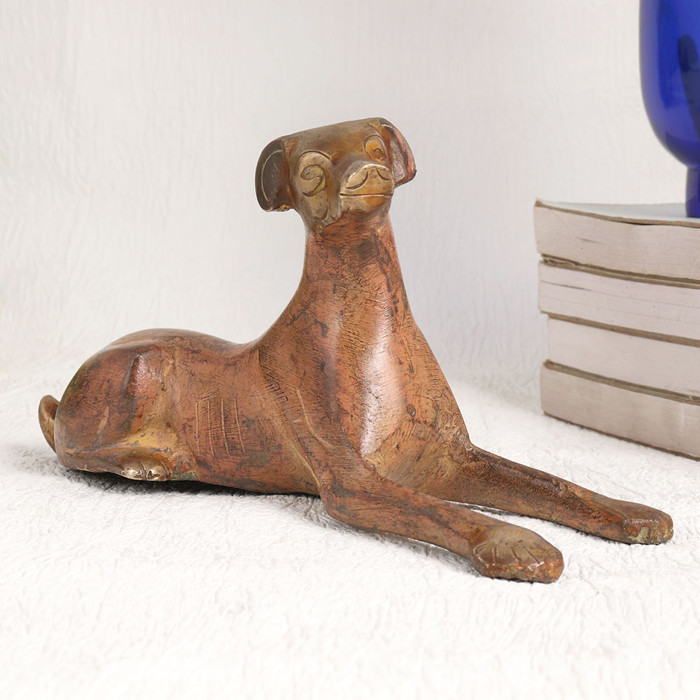 Buy a Brass Sitting Dog Statue online that is a true masterpiece of English Artistry. This enchanting piece is meticulously handcrafted by highly skilled and experienced artisans, employing their time-honoured craftsmanship to bring out the finest details in high-quality brass. The statue boasts an antique brown finish, lending it an air of vintage elegance that can instantly elevate any space. Versatile and captivating, this stunning dog statue is a perfect addition to your home, office, restaurant, hotel, cafe, or shop, where it will serve as a remarkable decorative accent. Its timeless charm is sure to captivate the attention of your guests and customers alike, creating an ambiance of sophistication and refinement. For collectors of vintage treasures, this Brass Sitting Dog Statue is a must-have addition to your curated assortment. It exudes an aura of nostalgia and charm, making it a standout piece in any exhibition or display. Furthermore, this statue makes for a thoughtful and cherished gift for your family, friends or relatives on special, festive, or auspicious occasions. Whether it's a birthday, anniversary, or a celebration of achievement, this Brass Sitting Dog Statue is a symbol of enduring beauty and craftsmanship that will be treasured for generations to come.