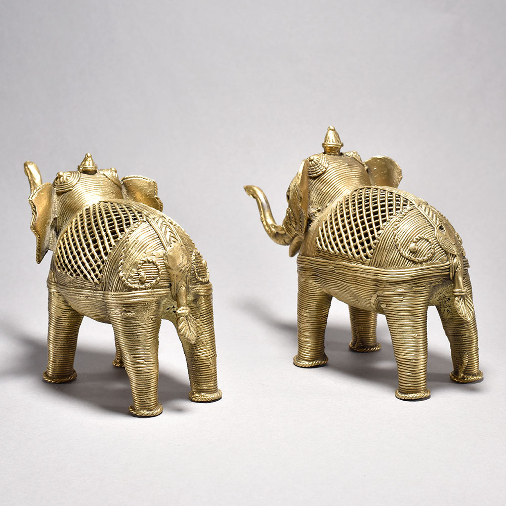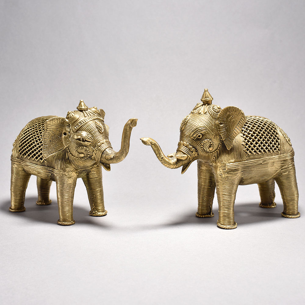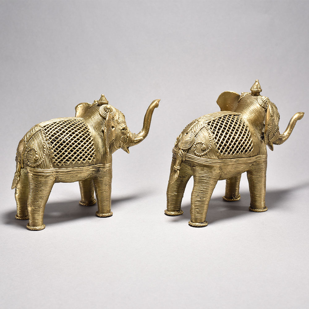Bring the beauty of India's rich tribal heritage into your home with this stunning pair of large-scale metal elephant sculptures. Crafted with intricate jalli work and exquisite detailing, these majestic creatures will captivate all who lay eyes on them.These regal elephants are more than just beautiful objects - they're a celebration of India's vibrant cultural traditions. Display them proudly and let their timeless elegance transport you to the heart of the subcontinent. Whether a gift or a treat for yourself, this pair of tribal art masterpieces will be cherished for years to come. Handmade from premium metal in the Orissa region of India This timeless piece is handcrafted by skilled artisans using time-honored techniques, ensuring each creation is truly one of a kind. Its versatile design makes it suitable for living rooms, bedrooms, offices, or meditation spaces, bringing a sense of heritage and style wherever it is displayed. This timeless piece is handcrafted by skilled artisans using time-honored techniques, ensuring each creation is truly one of a kind. Its versatile design makes it suitable for living rooms, bedrooms, offices, or meditation spaces, bringing a sense of heritage and style wherever it is displayed.