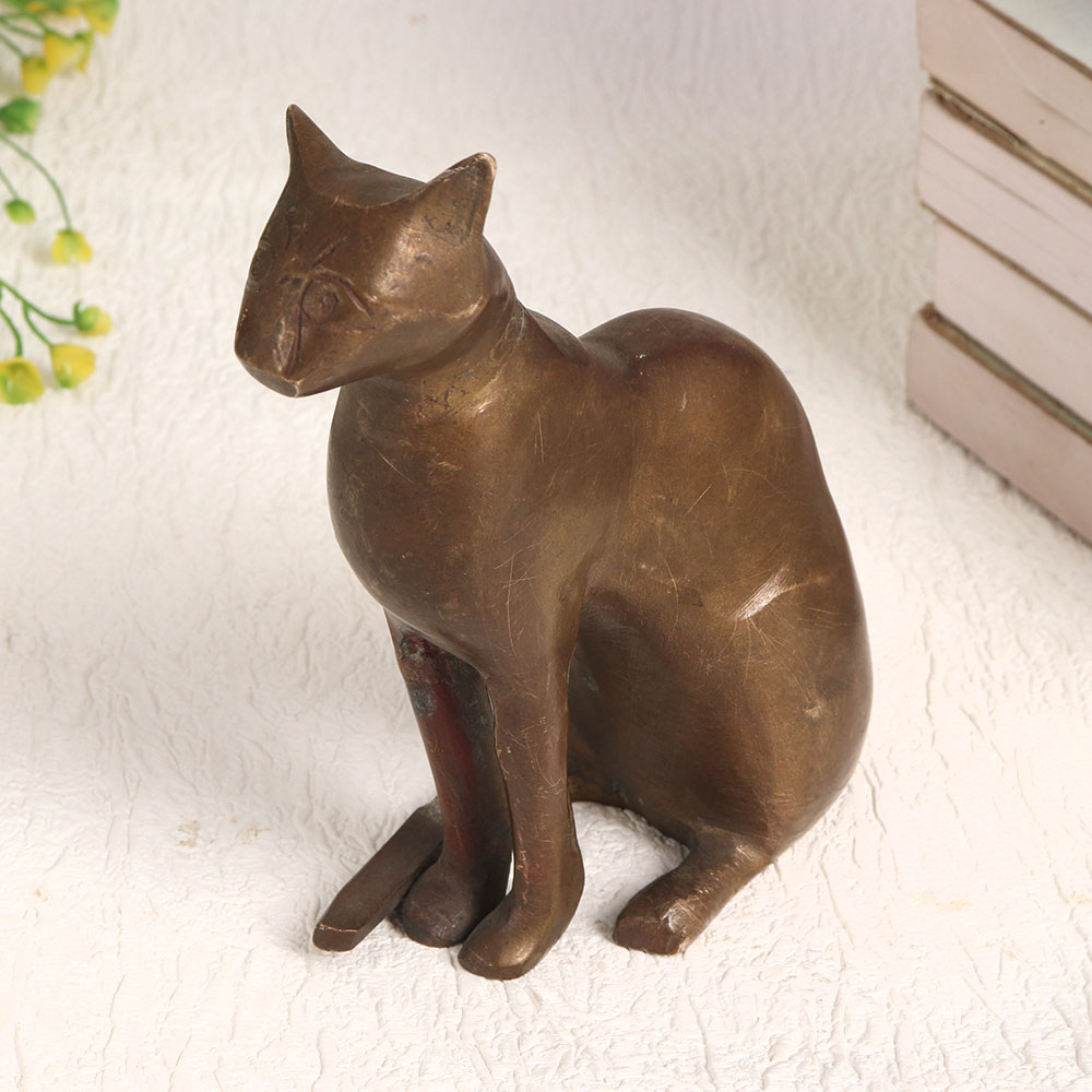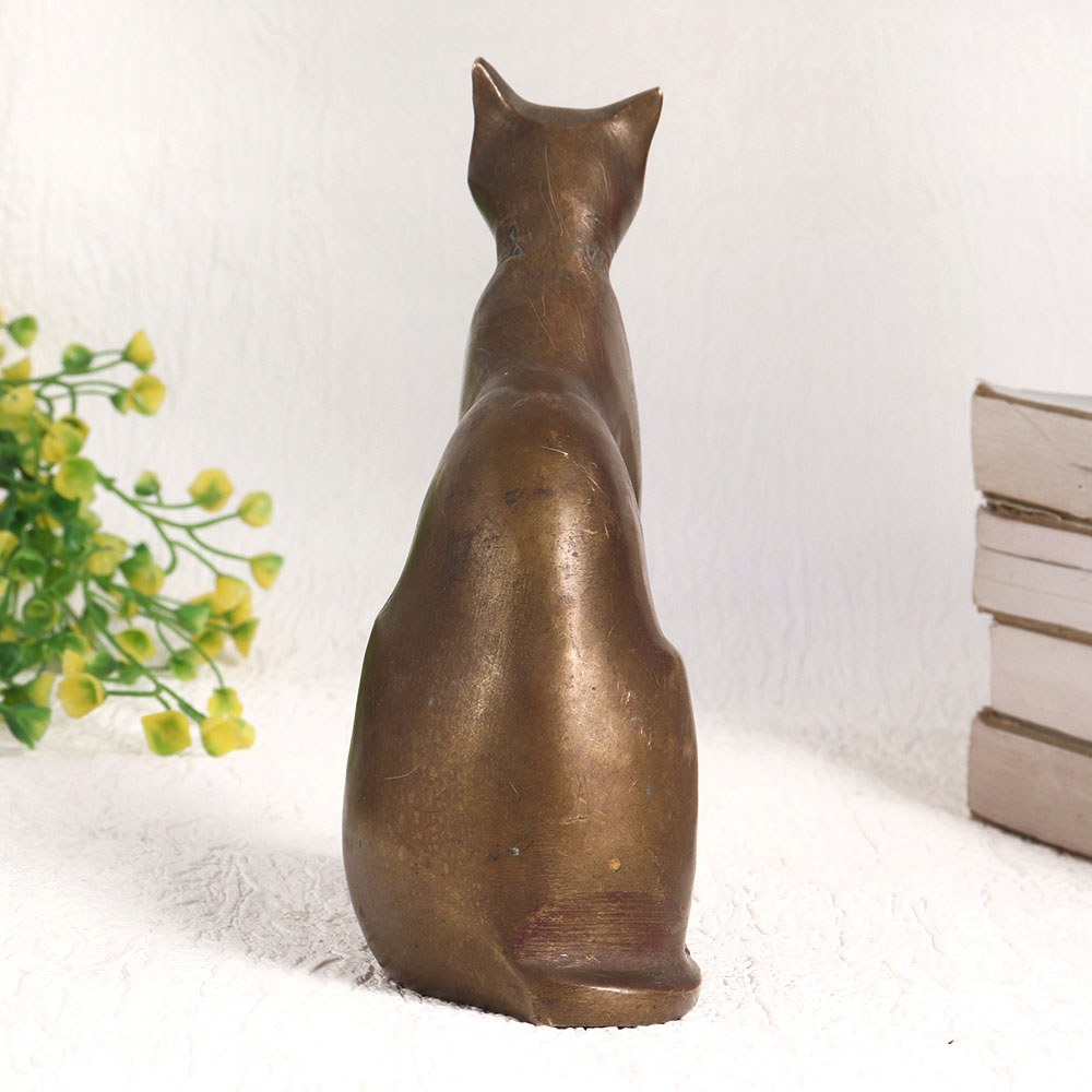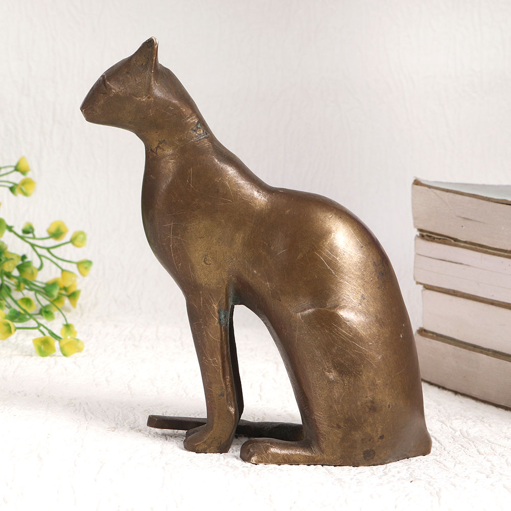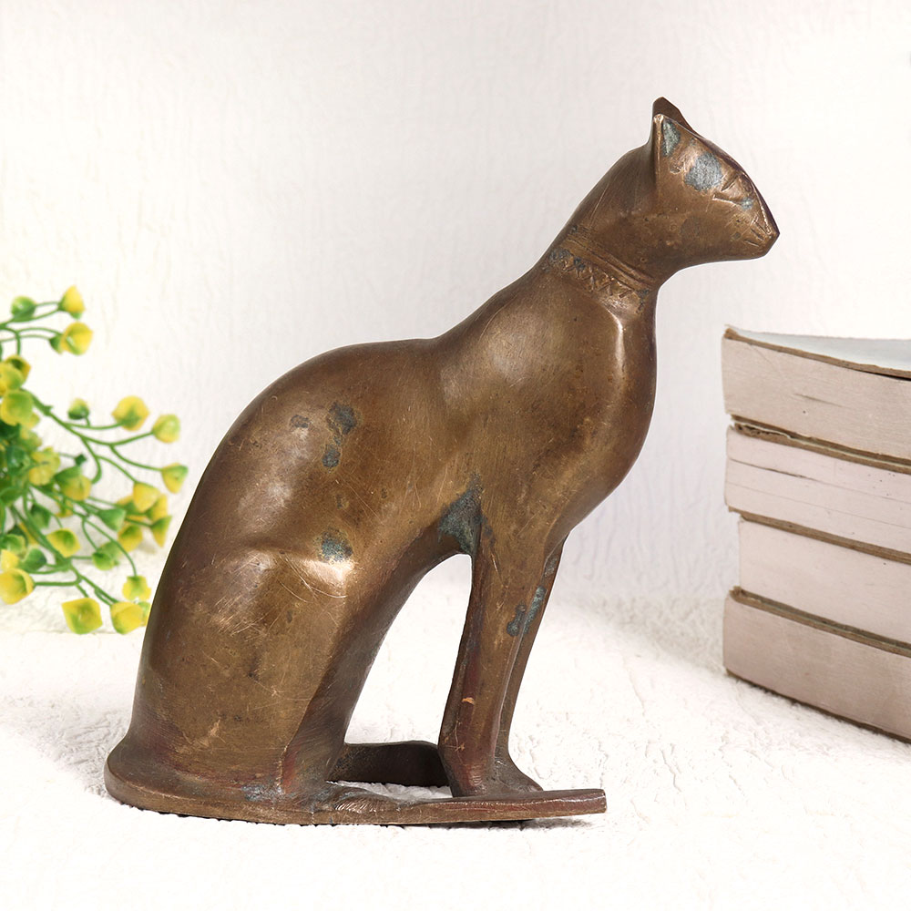 Buy a Brass Sitting Cat Statue online which is a testament to English Artistry and craftsmanship that will captivate your senses and elevate your decor. This stunning piece is meticulously handmade by talented artisans which boasts an antique brown finish that adds an air of vintage charm to any setting. Crafted with the utmost precision and care, this statue is cast in high-quality brass, ensuring its durability and timeless beauty. Its poised and regal stance makes it a versatile addition to any space – be it your home, office, restaurant, hotel, cafe, or shop. Imagine this elegant cat gracing your mantelpiece, adorning your dining table, or becoming a conversation starter in your establishment. It's not just a decorative piece, it's a symbol of refinement and elegance. For collectors, this statue is a must-have addition to your vintage collection, and for curators, it's a perfect exhibit centerpiece. Moreover, it makes for a thoughtful and memorable gift for your family, friends or relatives on special, festive, or auspicious occasions. Transform your space, inspire admiration, and create cherished memories with our Brass Sitting Cat Statue, a masterpiece that fuses artistry and sophistication.