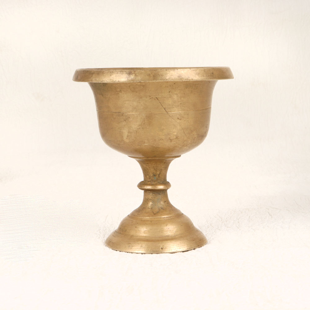 Immerse yourself in the sacred ambiance of prayer and rituals with our exquisite Vintage Brass Holy Cup. Handcrafted by highly skilled Indian artisans from premium brass, this holy cup is a testament to traditional craftsmanship. With its antique brown finish, the cup exudes an old-world charm that adds a touch of spirituality to any space. Perfect for holding kumkum tilak during prayers, rituals, and havans, this holy cup becomes a cherished centerpiece in your home, office, restaurant, hotel, or cafe prayer room. The intricate detailing reflects the dedication of the artisans, making each piece unique. Its versatile design allows it to serve as a decorative element, enhancing the aesthetic of any setting. A timeless addition to your vintage collection, this holy cup holds cultural and artistic significance. It serves as a thoughtful and meaningful gift for your family, friends or relatives on special, festive, or auspicious occasions, symbolizing blessings, tradition, and the richness of heritage. Embrace the spiritual journey and elevate the energy of your surroundings with this vintage brass holy cup.