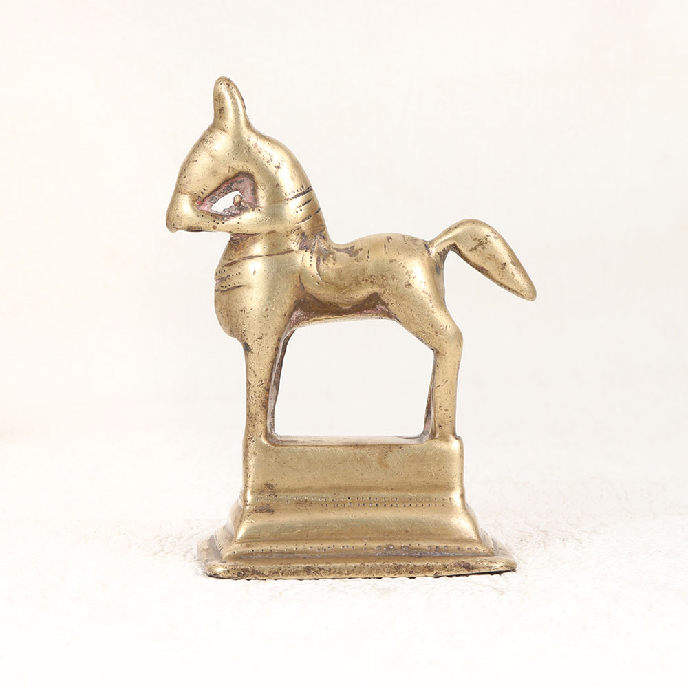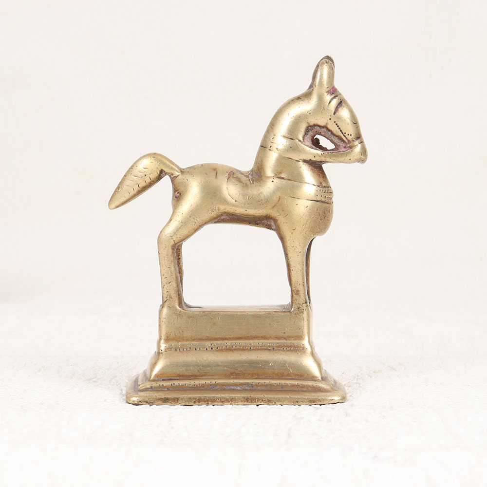 Decorate your home with our Vintage Brass Horse Statue that is a masterpiece meticulously crafted by highly skilled Indian artisans. This exquisite piece is fashioned from high-quality brass that showcases the rich heritage of traditional craftsmanship. Adorned with an antique brown finish, it exudes a timeless elegance that seamlessly blends spirituality with artistic finesse. This artisanal masterpiece holds a special place in prayer rituals, symbolizing strength, grace, and divine energy. Its vintage charm extends beyond religious significance, making it a versatile addition to any space. Whether placed at home, office, restaurant, hotel, or cafe, this statue effortlessly elevates the ambiance with its regal presence. Perfect for collectors of vintage treasures, this brass horse statue promises to be a noteworthy addition to your curated ensemble. Gift it to your family, friends or relatives on special, festive, or auspicious occasions, and share the timeless beauty and spiritual significance encapsulated in this handcrafted creation. Embodying the essence of West Indian culture, this statue transcends mere decoration, becoming a cherished emblem of art, tradition, and devotion.