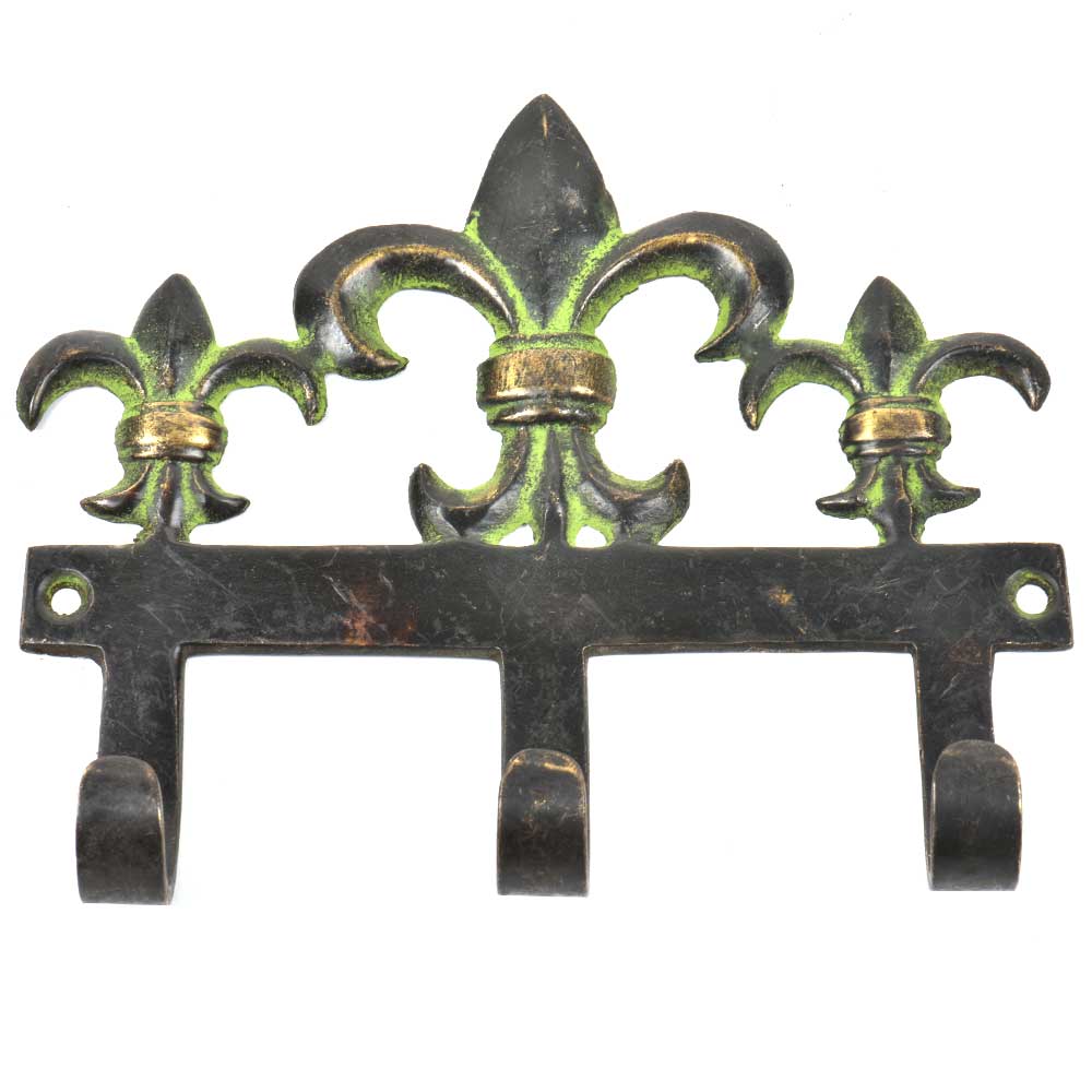 Handcrafted Brass Three Peg Hook – Antique French Floral Wall Organizer