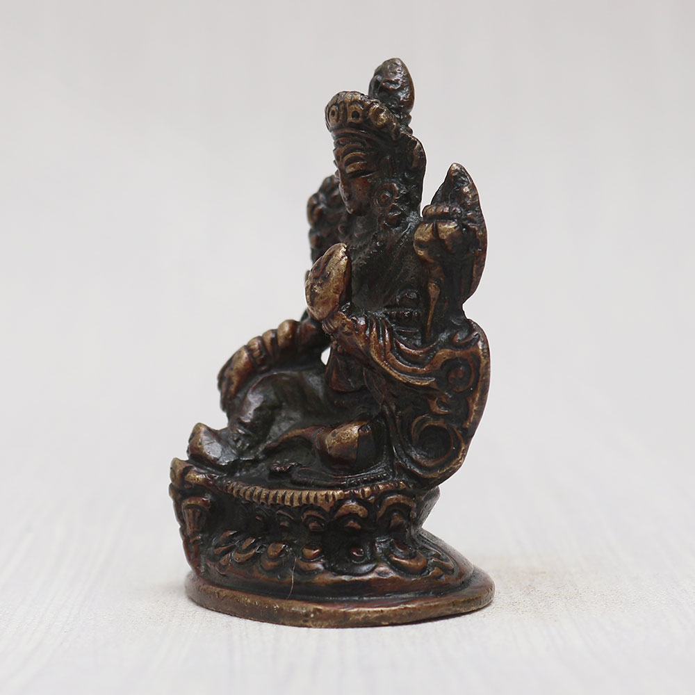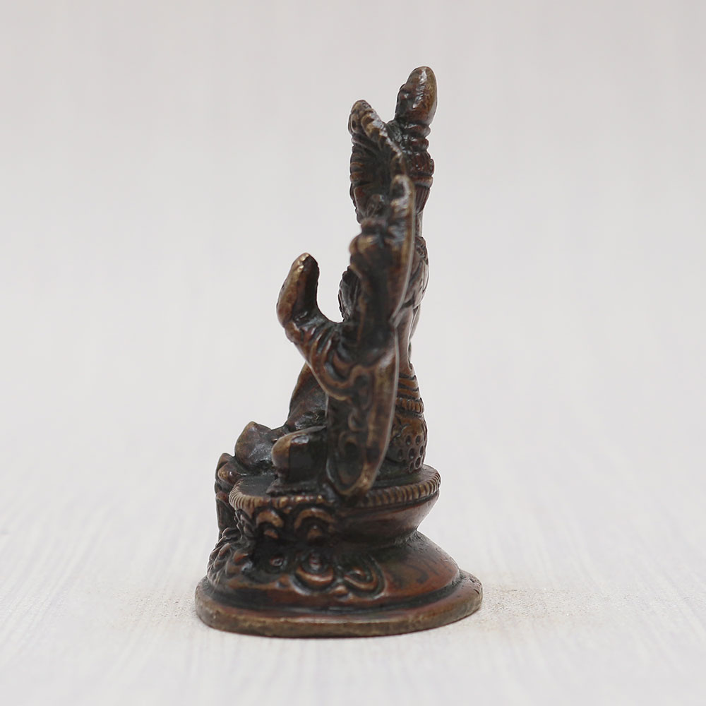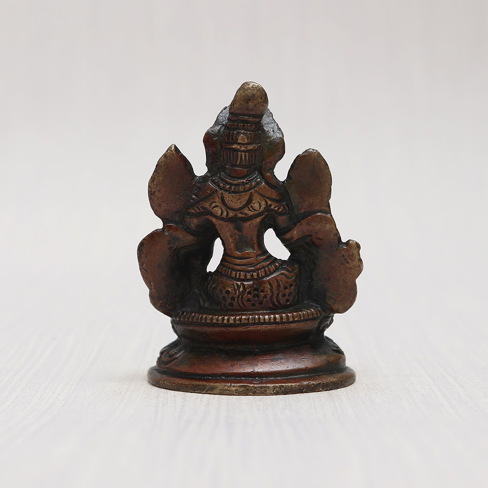 A Copper Statue of Goddess Tara who is a revered Buddhist Tibetan Deity, skillfully crafted by talented craftsmen from the finest quality copper. Seated gracefully on a beautifully adorned platform, this magnificent handmade murti showcases a vintage-style finish that exudes an aura of timeless elegance. With its captivating detailing and intricate craftsmanship, this Goddess Tara statue becomes a divine addition to your prayer room at home, office, restaurant, cafe, or shop. Its captivating allure makes it a perfect item for exhibition, decoration, and collection, while its spiritual significance allows it to be placed in temples for worship. Goddess Tara symbolizes compassion, protection, and enlightenment, embodying the essence of the Buddhist faith. As a cherished gift, this god statue for home serves as a thoughtful present for your loved ones on special, festive, or auspicious occasions. Embrace the divine energy of Goddess Tara and add a touch of spirituality to your surroundings with this exceptional copper masterpiece.