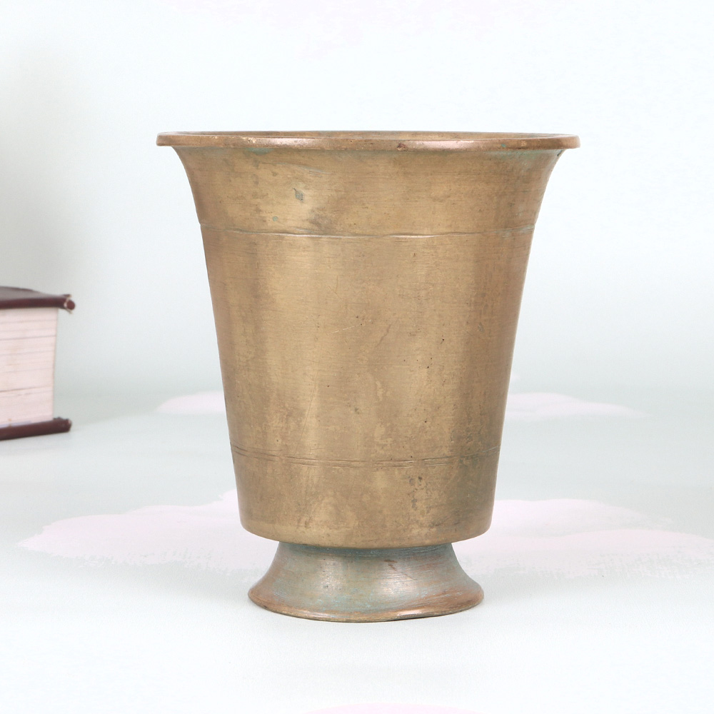 In a world that often moves at a breakneck pace, it's essential to carve out moments of stillness and reflection. This vintage brass holy glass provides the perfect sanctuary for your devotional practices, allowing you to create a sacred space wherever you are. Crafted from durable brass with an heirloom-quality finish, this candle holder exudes a sense of timelessness and reverence. The weighted base ensures your candle will burn steadily, without the risk of tipping or spilling. Light a flame within and let its warm glow inspire you to pause, breathe, and reconnect with your deeper purpose. Whether you're seeking to deepen your personal meditation routine, enhance your religious ceremonies, or simply cultivate more mindfulness in your daily life, this versatile holy glass is a beautiful and functional tool to have by your side. Its classic, understated design allows it to seamlessly integrate into any environment, making it a meaningful addition to your sacred space.